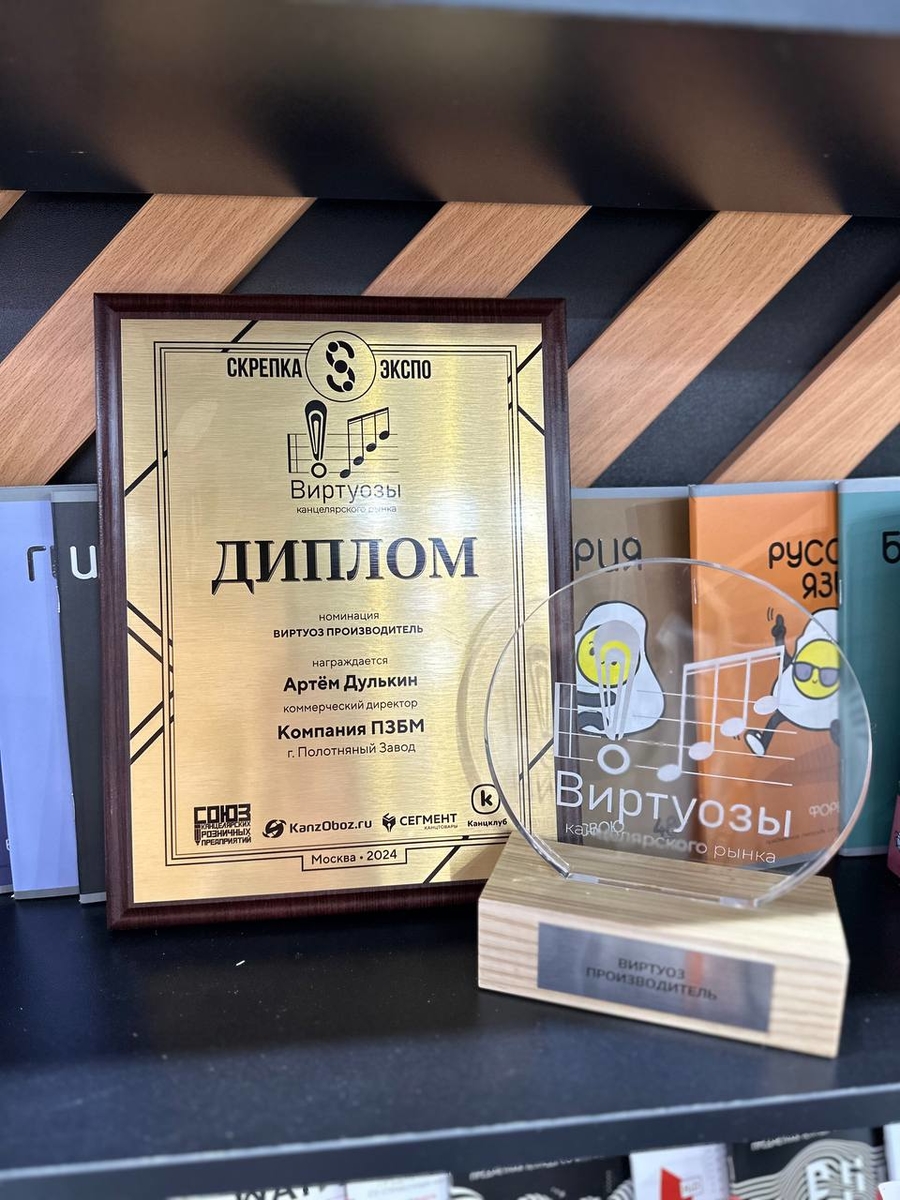 Награда «Виртуоз-производитель» была вручена коммерческому директору ПЗБМ Артёму Дулькину, который является настоящим профессионалом канцелярского рынка. В своей благодарственной речи он подчеркнул, что эта награда принадлежит всему коллективу и без слаженных действий команды такие успехи были бы невозможны.