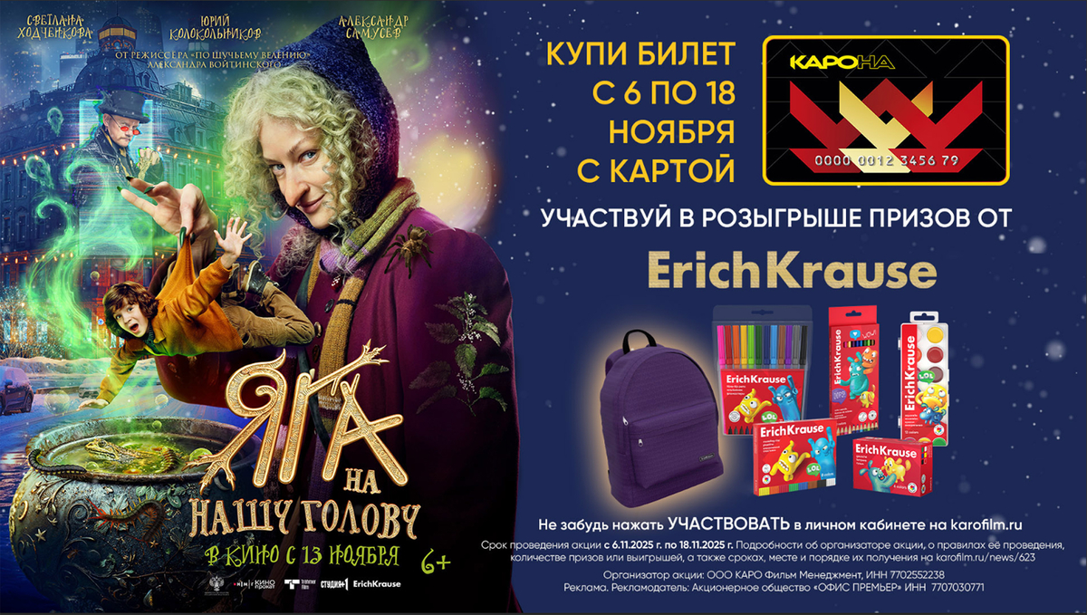 ErichKrause и сеть кинотеатров «КАРО» запускают крупную рекламную кампанию «Яга на нашу голову» с конкурсом и призами