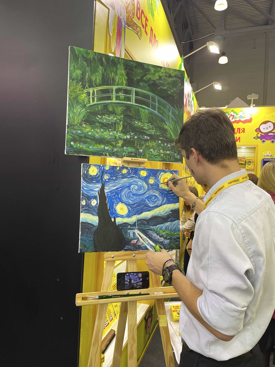 Посетители приходили в зону «Каляки-Маляки» не только за новинками, но и за атмосферой удивительного детства. Они чудесным способом переносились в волшебную страну ярких красок и игр. А высокое качество продукции поражало всех присутствующих. Художник с помощью всего шести цветов гуаши «Каляка-Маляка» на стенде копировал мировые шедевры, и даже превосходил по качеству и красоте работы Ван Гога и Моне.
