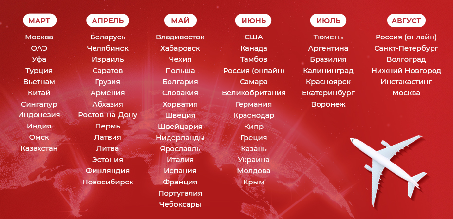 В рамках отборочного этапа пройдёт 25 очных кастингов в городах России. Для участниц, чьих городов не оказалось в расписании, запланированы два дистанционных кастинга. Они пройдут в июне и августе. Кастинги для претенденток из других стран пройдут в формате онлайн и охватят 40 стран. Также в завершении кастинг-тура будут подведены итоги ставшего уже традиционным инстакастинга.