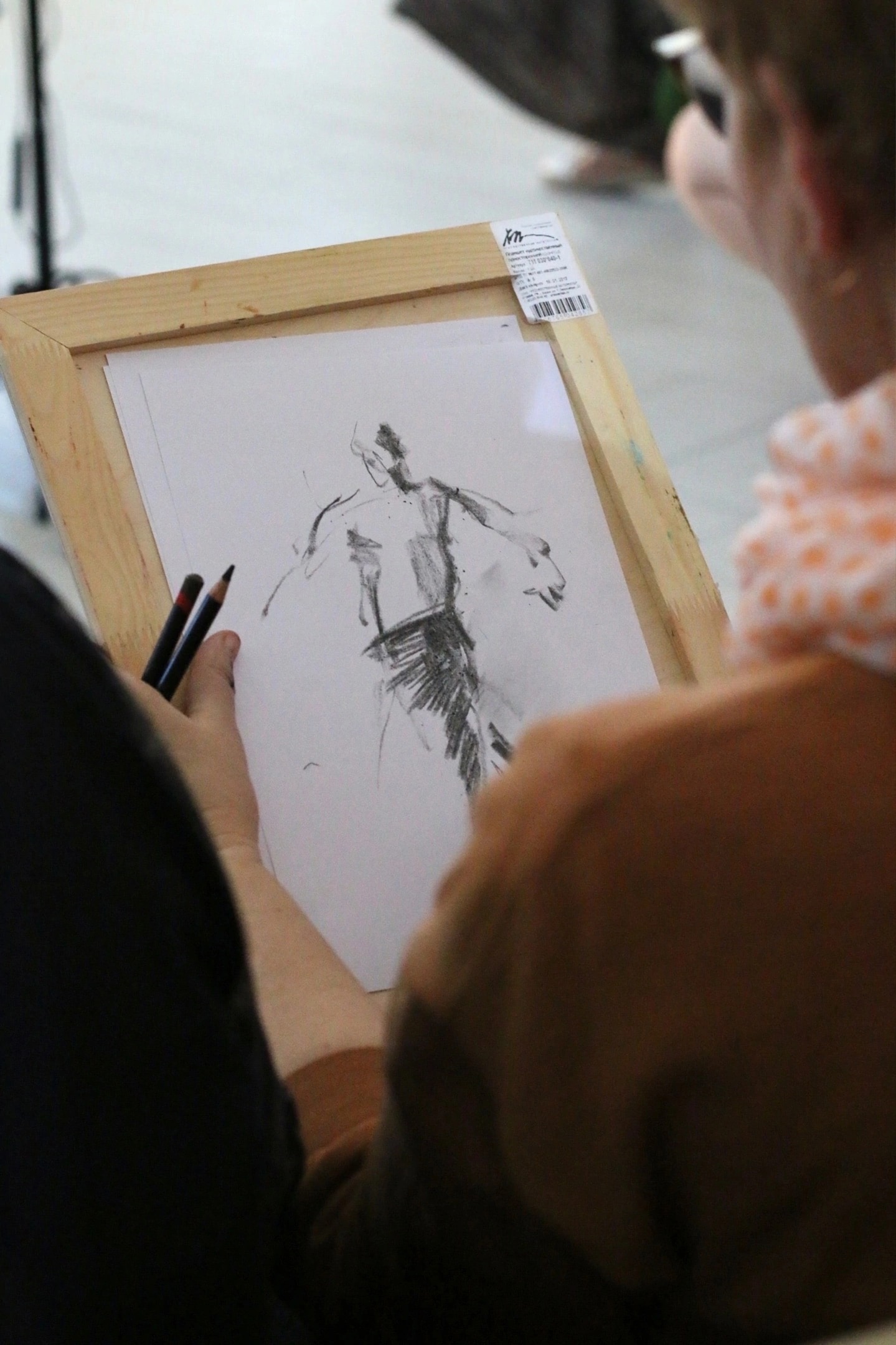 6 апреля на открытии «МЕЛА» прошёл интересный эксперимент: известный художник Сергей Бакин делал зарисовки фигуры танцора в движении. На протяжении 40 минут создавались новые и новые наброски. Присоединиться к Сергею могли все присутствовавшие на открытии художники, тем более что в зале был тестовый стол от Fabriano и ShinHan Art: легко было протестировать в зарисовках итальянскую бумагу для разных техник, пастель, карандаши и другие арт-материалы корейского бренда.