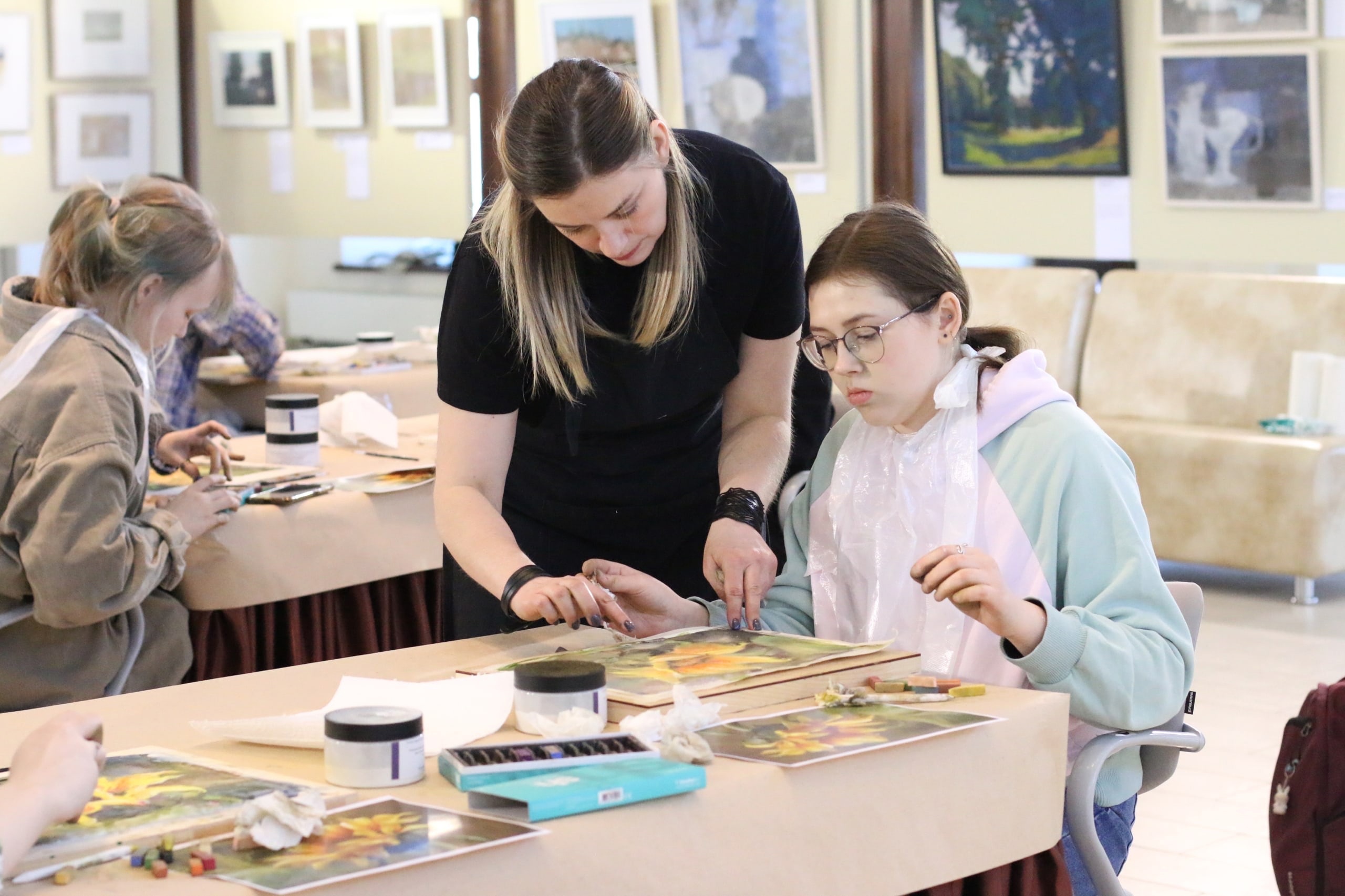 На следующий день, 7 апреля, студенты Ивановского художественного училища были приглашены на два мастер-класса «СТИХИИ»: Валерия Куликова научила комбинировать техники акварели и пастели (спонсор — ShinHan Art), а Мария Яговкина — делать архитектурные зарисовки спиртовыми маркерами (спонсор — SKETCHMARKER). Ребята получили не только новые практические навыки, но и подарки от спонсоров.