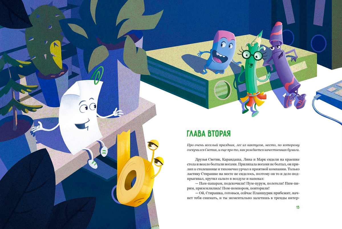 «Светик и его офисные друзья, или Удивительные приключения формата А4» — захватывающая история для детей с яркими иллюстрациями и необычными персонажами, которая поможет по-новому взглянуть на самый привычный лист белой бумаги. Мы решили создать эту книгу, чтобы показать, сколько трудов, знаний и души нужно вложить, чтобы изготовить бумагу, почему ее не заменят электронные носители, для чего необходимо бережно и ответственно относиться к лесам, восстанавливать их, как делаем мы. Уверен, что наша книга будет интересна и взрослым, так как за каждой историей главных героев увлекательно наблюдать и узнавать новое.