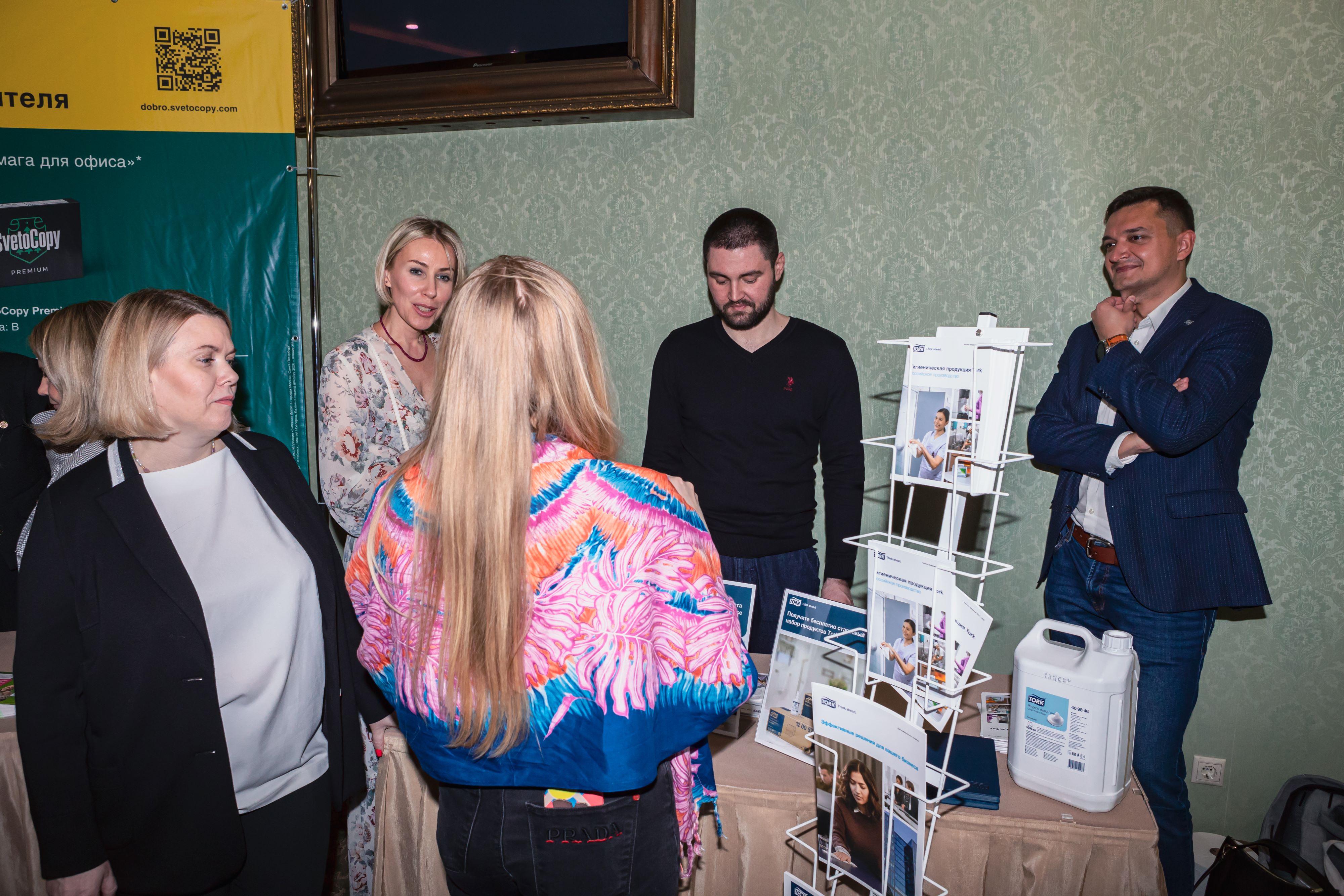 В завершение программы мероприятий в отеле «Золотое кольцо» прошла церемония вручения премий «Административный директор — 2022» и «Лучший офисный проект — 2022», на которых были отмечены лучшие решения для офисов. Во вручении наград в номинациях «Корпоративная культура» и в «Специальной номинации» приняли участие коммерческий директор профессионального ассортимента Tork Максим Барков и директор по продажам бренда Владимир Кузичкин.