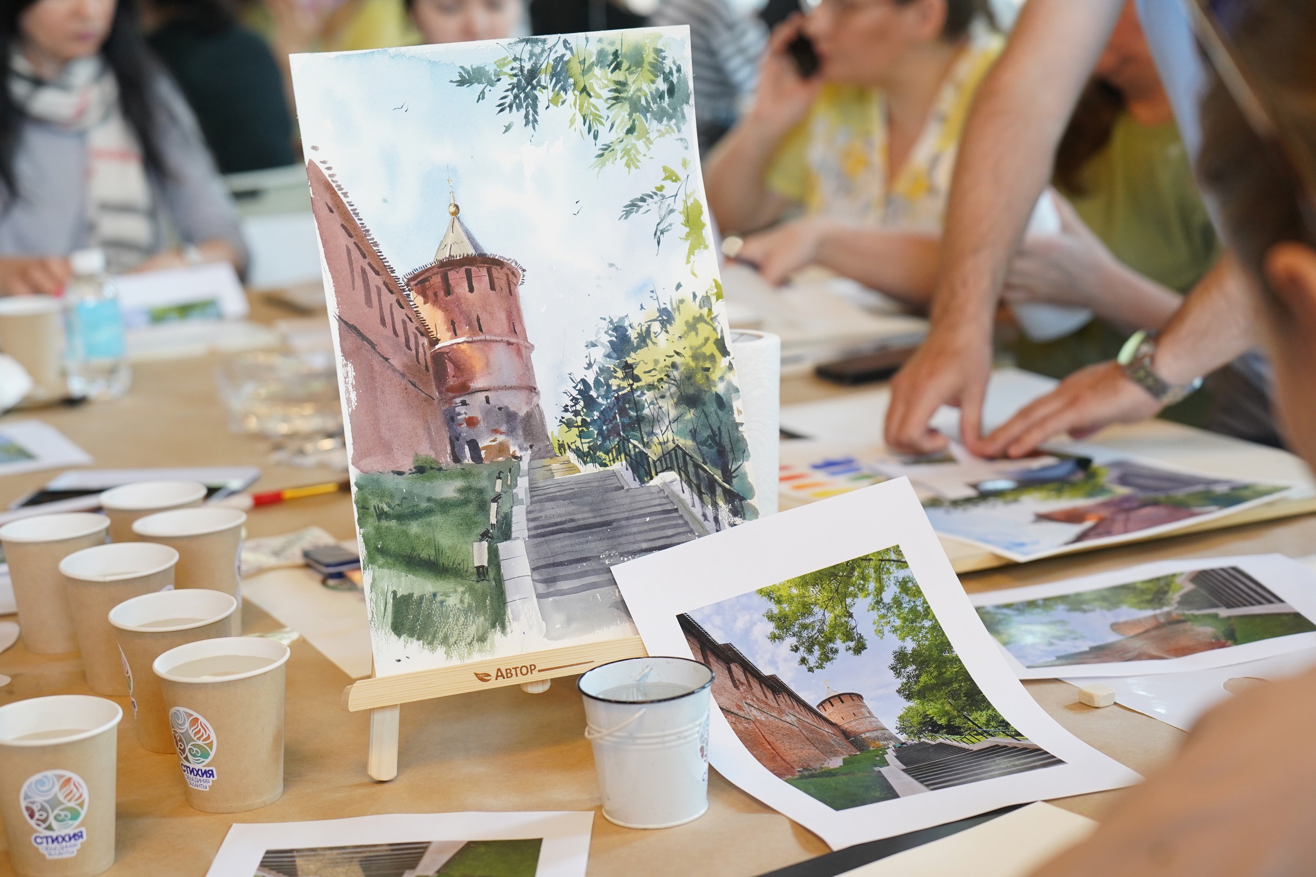 Более продвинутые художники могли повысить навыки на активностях #СТИХИЯ_pro_art. Мастер-классы дали Елена Лисина, Виринея Никитина и Алексей Кондратьев (акварель ShinHan PWC), Анна Иванова (гуашь ShinHan Professional Designers). Все три группы художников работали на бумаге из 100% хлопка Fabriano Artistico.