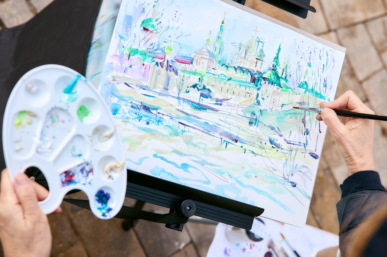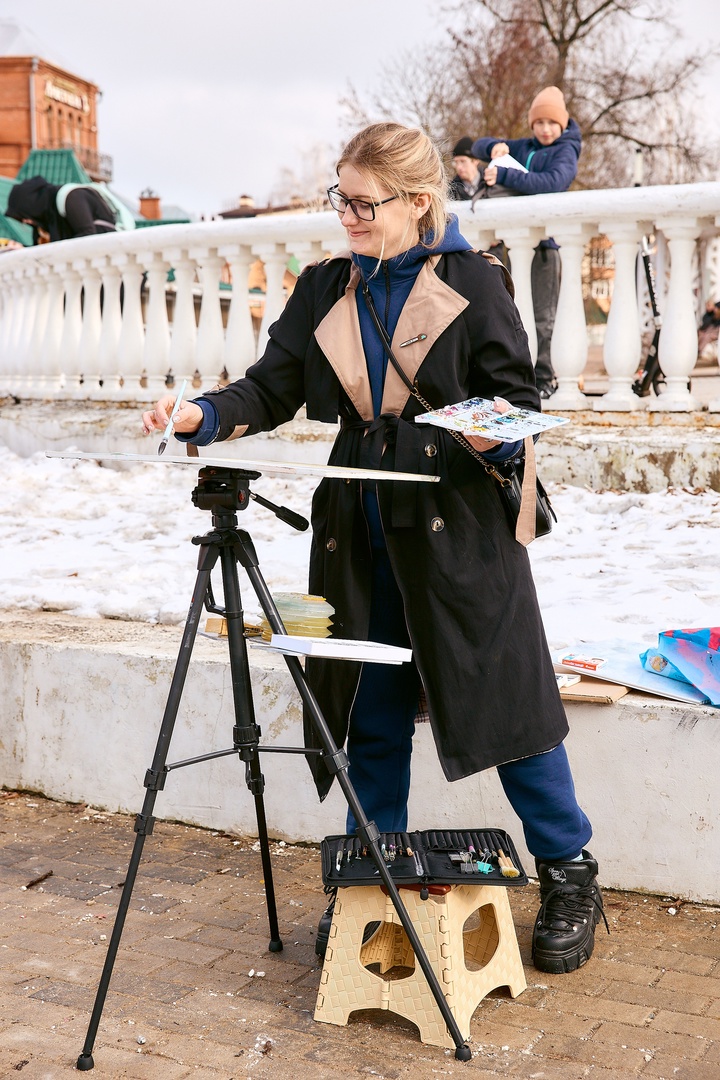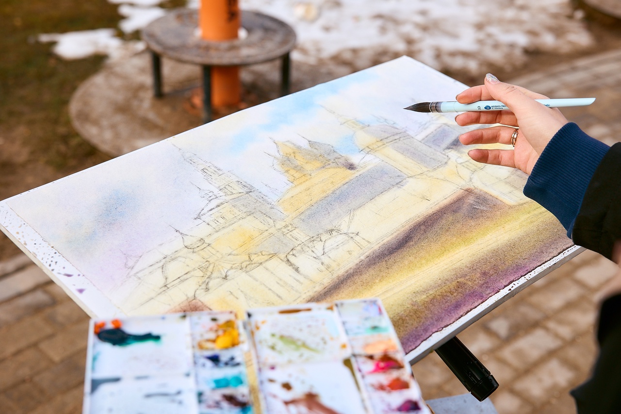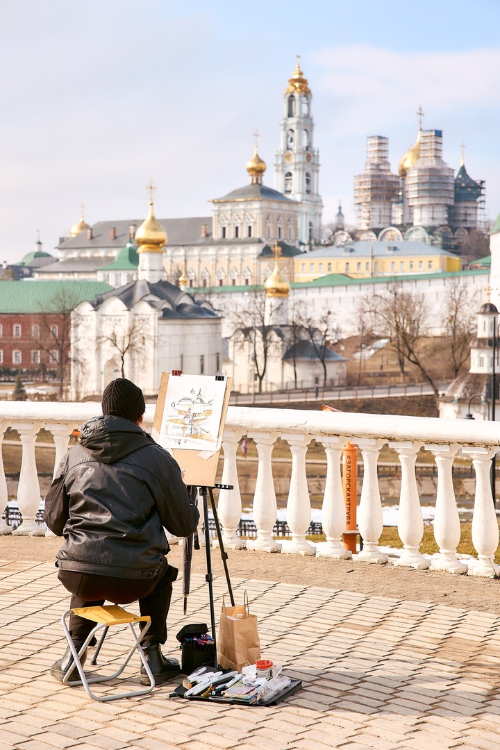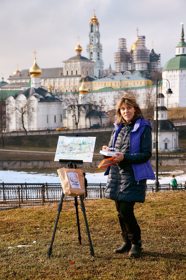 В Сергиевом Посаде, как было запланировано, команда пленэристов отправилась на смотровую площадку Блинной горы. Около двух с половиной часов было у участников на создание работы. Восемь из них выбрали основным материалом акварель, двое — спиртовые маркеры, ещё двое — масляные краски, одна участница — акрил. Базовые наборы материалов были предоставлены спонсором ShinHan Art.