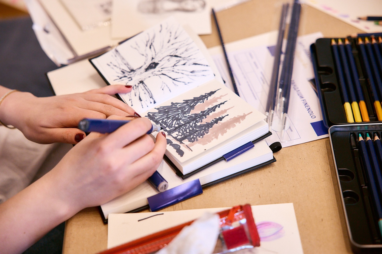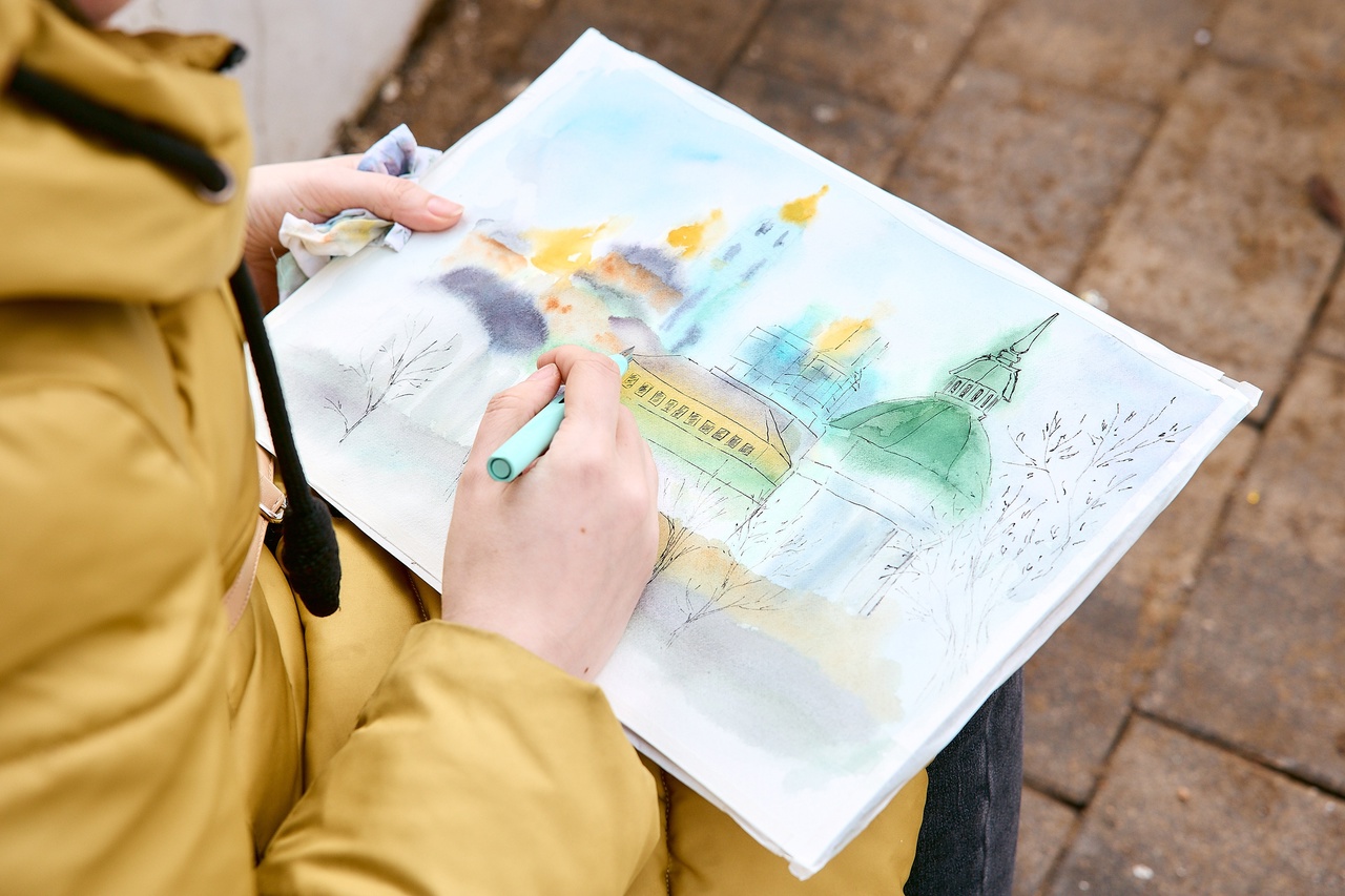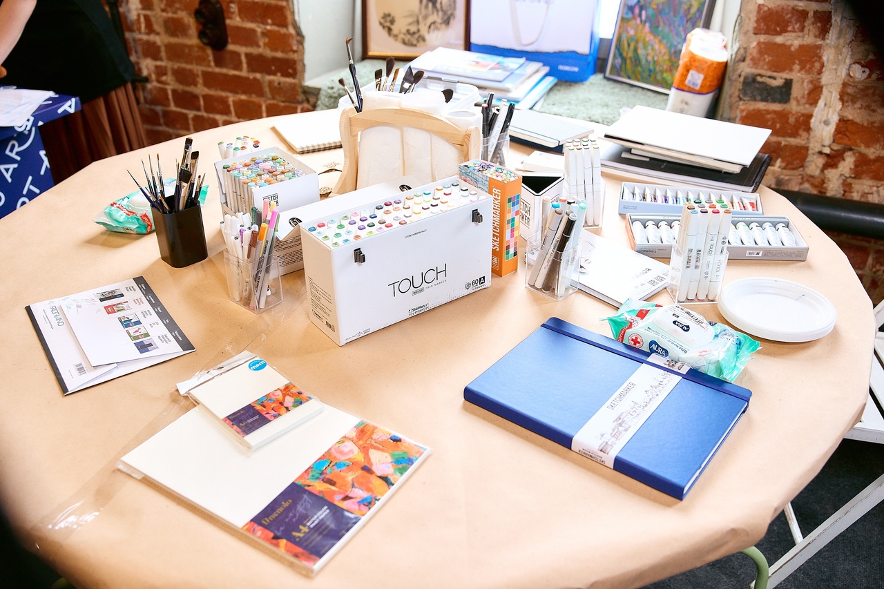 В зоне лектория (#СТИХИЯ_sketch) было много быстрых зарисовок и скетчинга со SKETCHMARKER: архитектурные зарисовки с Екатериной Пластининой, стилизация персонажа с Анастасией Сараевой, кастомизация новых скетчбуков бренда. Маркерные зарисовки сделали и участники архитектурной прогулки с Михаилом Семеновым — краеведом и урбан-художником.