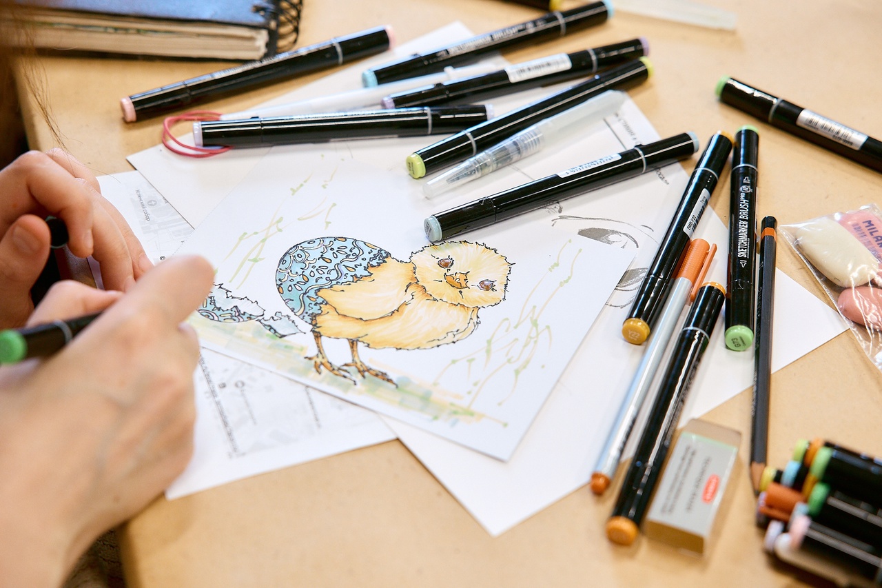 Кроме того, под тегом #СТИХИЯ_art прошли мастер-классы Ирины Дубровской (угольные карандаши Finenolo) и Елены Бабаянц (цветные карандаши Finenolo). Любой желающий мог сделать с натуры зарисовки фигуры в группе Ольги Шишкиной или создать яркий декоративный элемент — пасхальное яйцо, позолоченное поталью, — с Ярославом Паниным. Было чем заняться и юным художникам: для них прошёл мастер-класс студии «Дракон летит» с карандашами Finenolo.