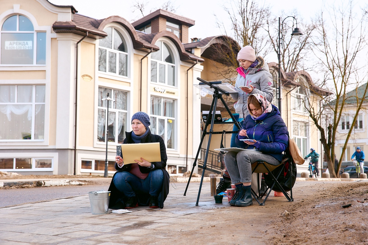 В Сергиевом Посаде, как было запланировано, команда пленэристов отправилась на смотровую площадку Блинной горы. Около двух с половиной часов было у участников на создание работы. Восемь из них выбрали основным материалом акварель, двое — спиртовые маркеры, ещё двое — масляные краски, одна участница — акрил. Базовые наборы материалов были предоставлены спонсором ShinHan Art.