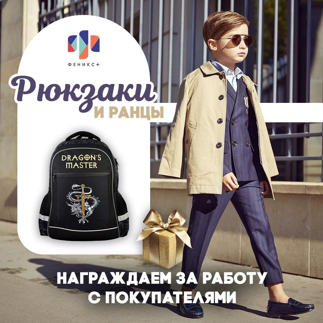 «Феникс+» представляет акцию от поставщика «Награждение розничных продавцов за работу с покупателями». С партнёром заключается договор, что за продажу ранца TM Phoenix-plus розничный продавец или магазин (в случае отсутствия персональных продаж) получает денежное вознаграждение.