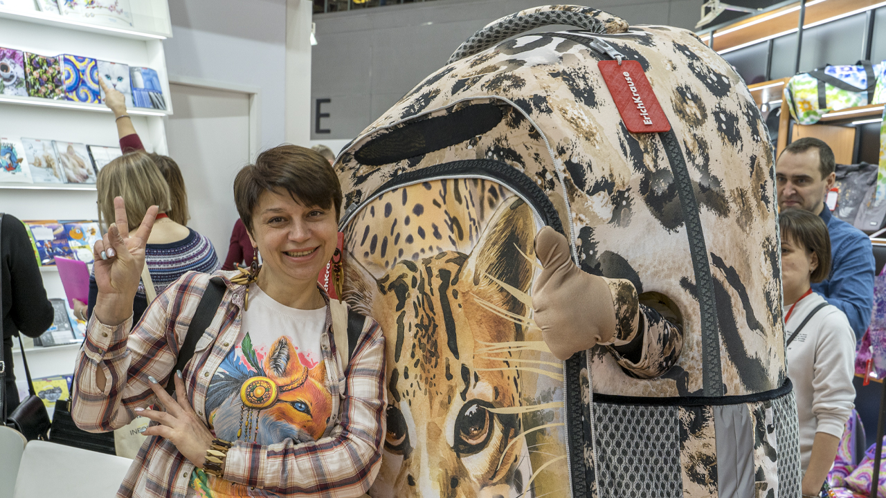 Большой интерес среди гостей выставки вызвали новые коллекции текстильной продукции. Благодаря высокому качеству и привлекательному дизайну спрос на эти товары ErichKrause® продолжает расти, и компания постоянно наращивает производство стильных, прочных и удобных сумок, рюкзаков и ранцев. В этом году она наглядно продемонстрировала одну из самых популярных серий рюкзаков ErgoLine® 15 литров в коллекции Wild Cat — это действительно был яркий персонаж выставки, ростовая кукла-рюкзак, с которой фотографировались многие посетители.