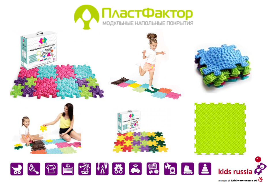 Одно из основных направления производства - покрытия с высокой степенью травмобезопасности для детских и спортивных площадок, в том числе наборы ковриков для детей (занятие физкультурой, игры и т.д.).