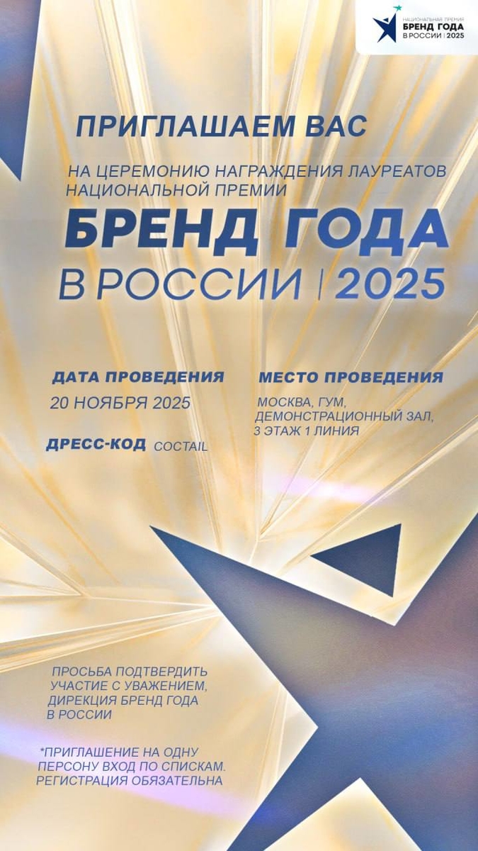 В этом году в каждым этапом к нам приходило всё больше и больше российских брендов, и члены экспертного жюри в ходе голосования отмечали их нацеленность на актуальные запросы современных потребителей, будь то крупные лидеры или яркие новички. Процесс отбора заявок этого сезона успешно завершился, их поступило рекордное количество — более 500! Впереди нас ждёт голосование за звание лауреатов премии. Желаю всем брендам удачи! Встретимся на церемонии награждения победителей в Москве».