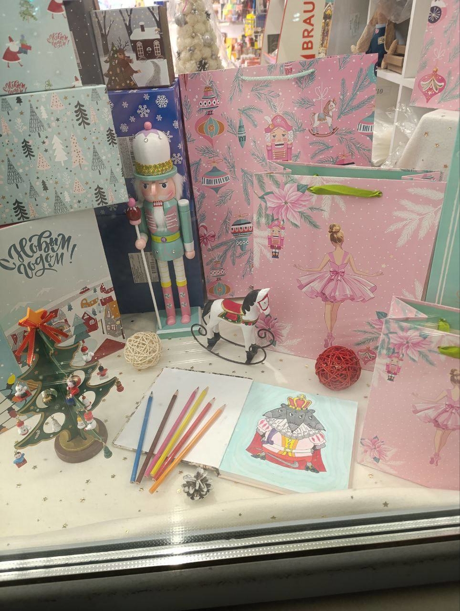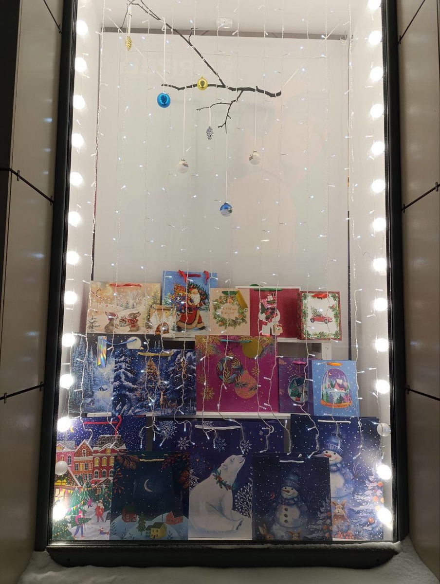В этом году решили большее внимание уделить витринам, украсить каждую отдельно. Наконец-то сделали желаемую подсветку. Так как следующий год Змеи, сразу вспомнился мультик «38 попугаев», одно из окон оформлено как раз по мотивам этого мультфильма. Окно со змейкой в машине — отсылка к мультику «12 месяцев». Внутри магазина к обычному оформлению добавили фигурки с дымковской игрушкой, так как Киров в этом году новогодняя столица России. В подготовке магазина к новогодним праздникам принимали участие: стихоплёт, змеешвейка и вырезалкин — ЕВ, лепка и рисование — Майя Медведева, высотные работы под потолком — Матвей Медведев, контроль тайминга — Дмитрий Медведев ну и наша главная звезда — Игорь Анатольевич.