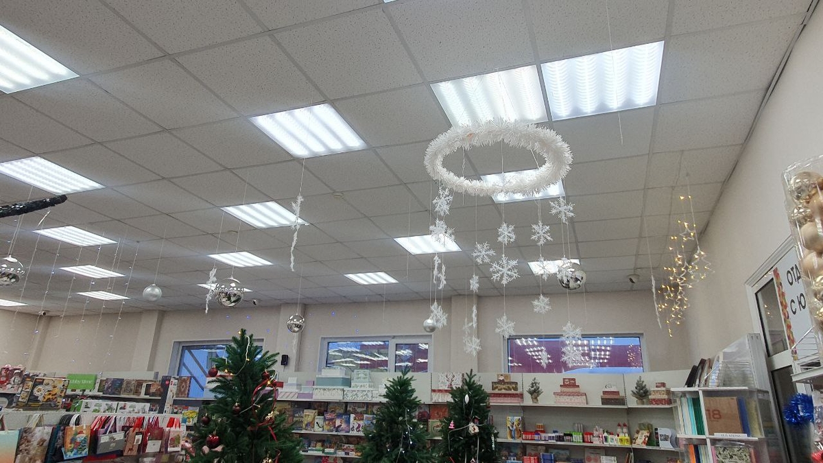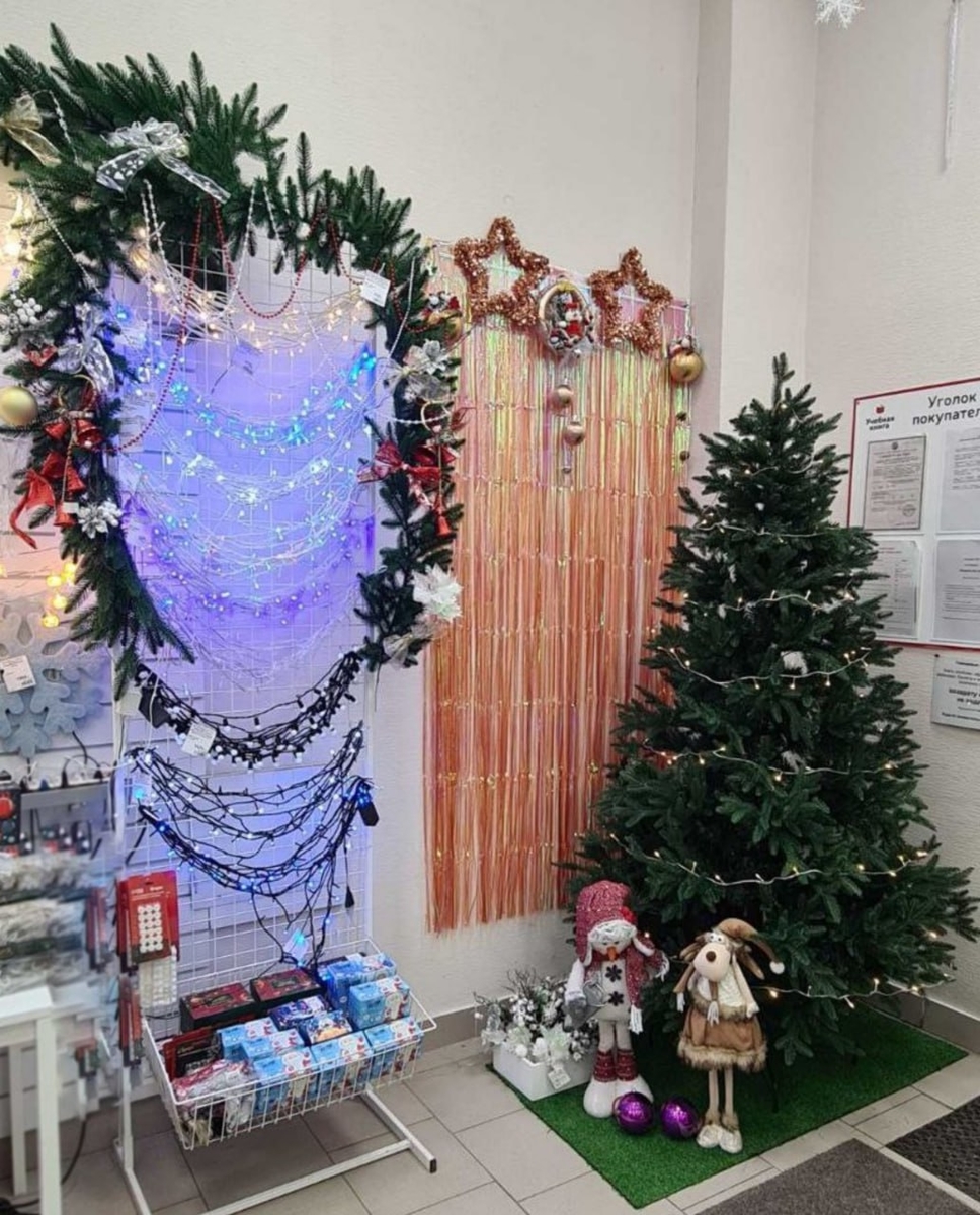 В этом году мы решили по-настоящему погрузиться в новогоднюю атмосферу. Уделили много внимания новогоднему оформлению и постарались сделать всё возможное, чтобы каждый уголок наполнился волшебством. Подключали всё, что было возможно. Световые фигуры, свечи, камины и гирлянды, которые теперь сверкают даже на потолке. Без света магазин выглядит особенно красиво и сказочно. Не хочется включать свет, чтобы не нарушить этот уютный настрой.