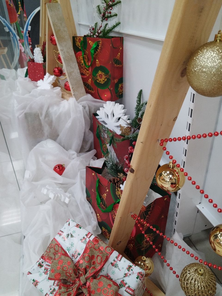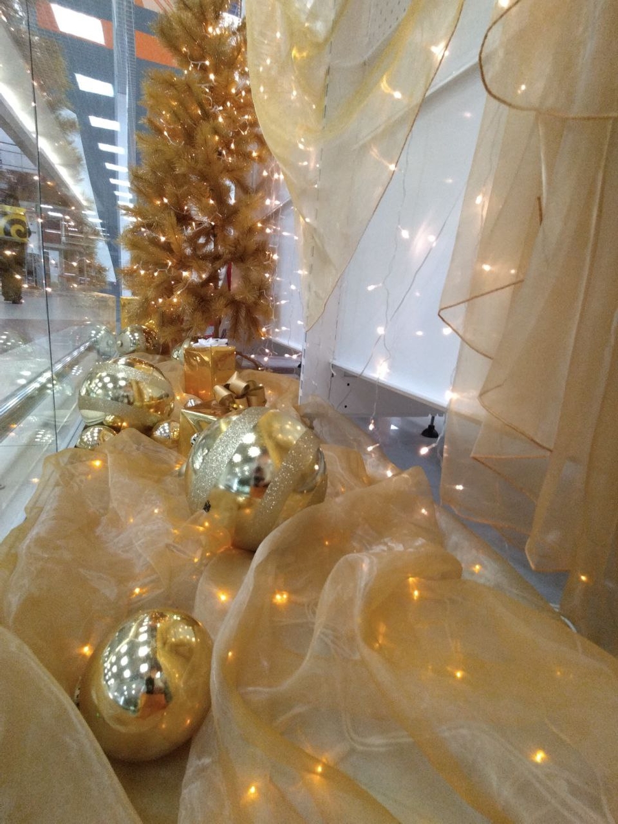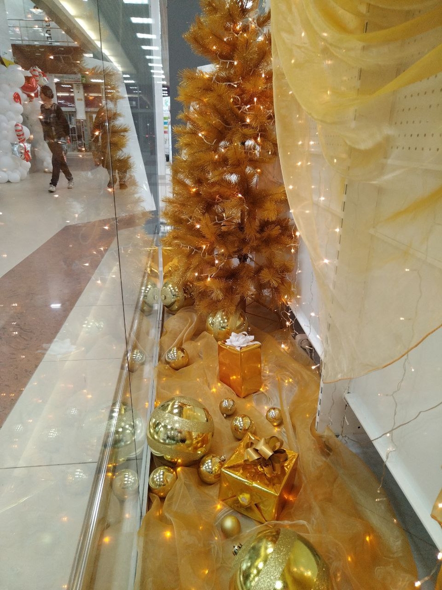 Всем огромный привет из Воронежа! Проект новогоднего украшения магазина был разработан самым известным дизайнером нашего города. Потрачено куча времени, деняг и нервов… Шутка) Буду честна перед вами. На самом деле не было никакой задумки вообще. Зато всякой всячины новогодней — три ящика... В общем, я его слепила из того, что было, вместе с Яной Викторовной (главным человеком в нашей компании). Мне кажется, неплохо получилось. Как вы считаете? Нам, по крайней мере, нравится. Всем участникам конкурса желаем удачи!