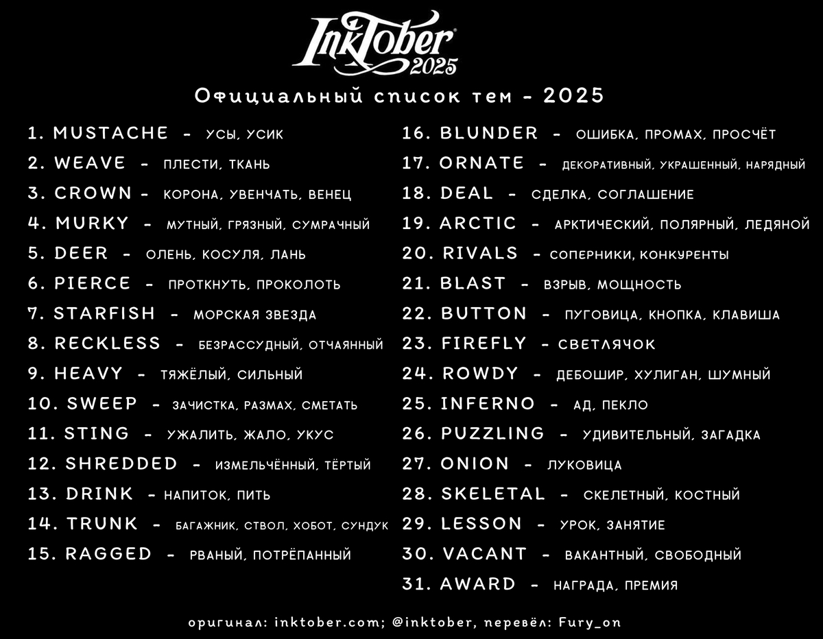 Список тем «Инктобера-2025» на русском языке: версия Fury On