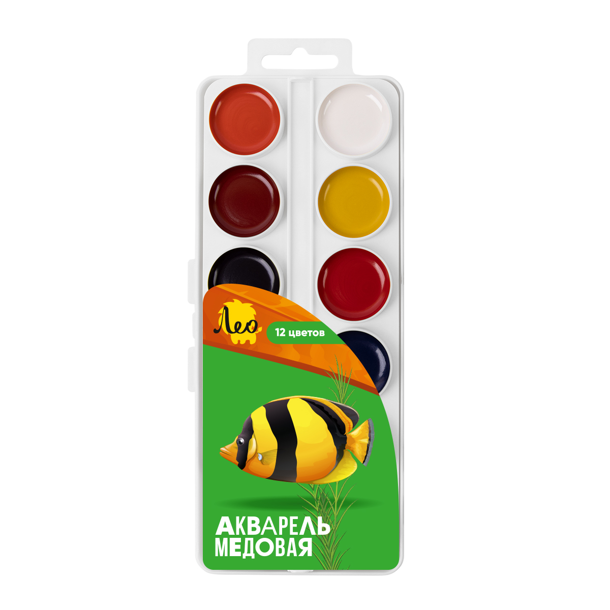 Краска акварель "Лео" "Ярко" медовые, без кисти (классическая) 12 цв.