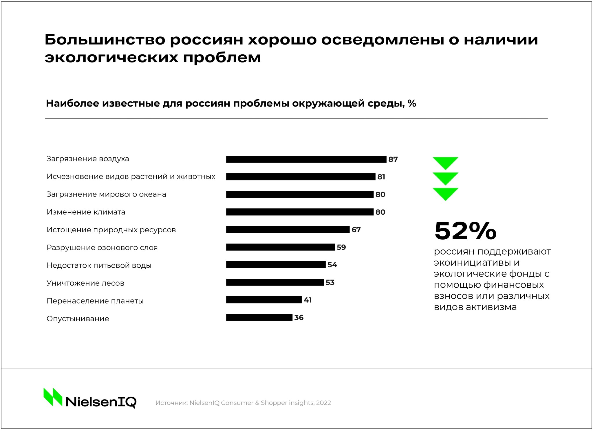 - 52% россиян поддерживают различные экоинициативы и экофонды;