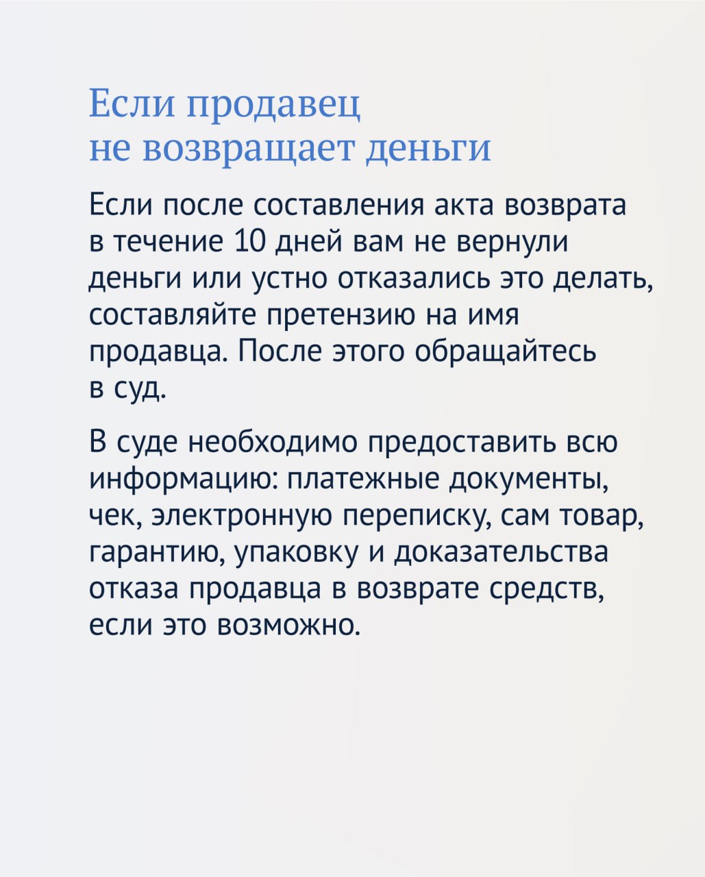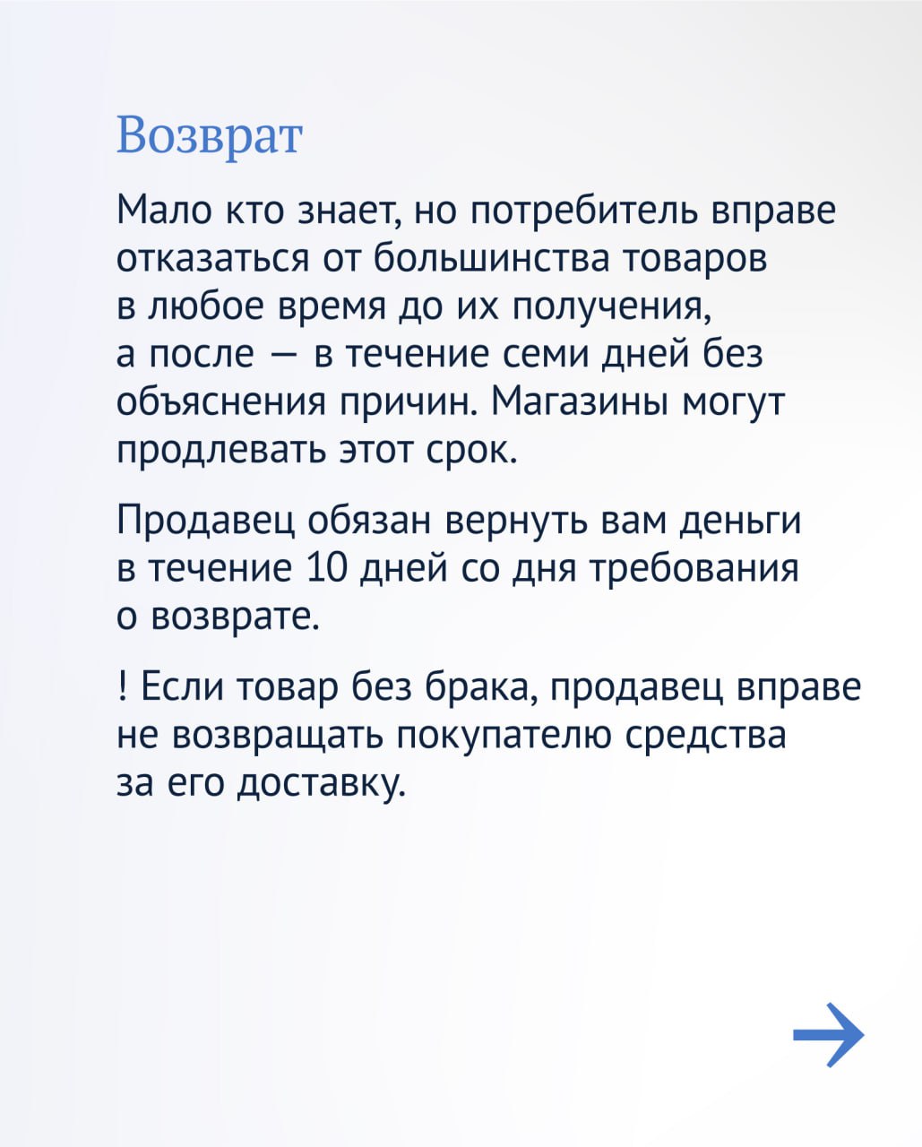 - от покупки можно отказаться в любое время до её получения, а после — в течение семи дней без объяснения причин;