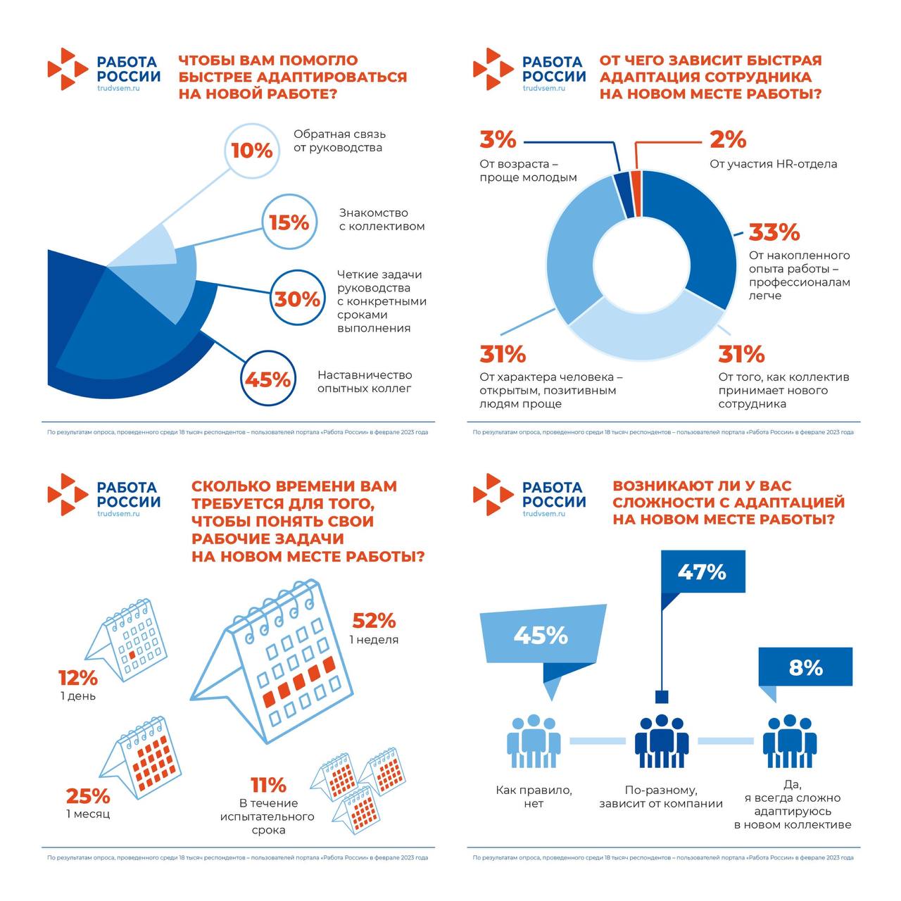 На портале «Работа России» провели опрос на тему адаптации на новом месте работы.