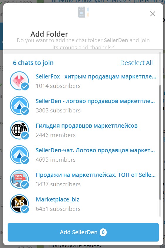 Создана подборка телеграм-каналов экосистемы сервисов SellerDen для продавцов маркетплейсов.