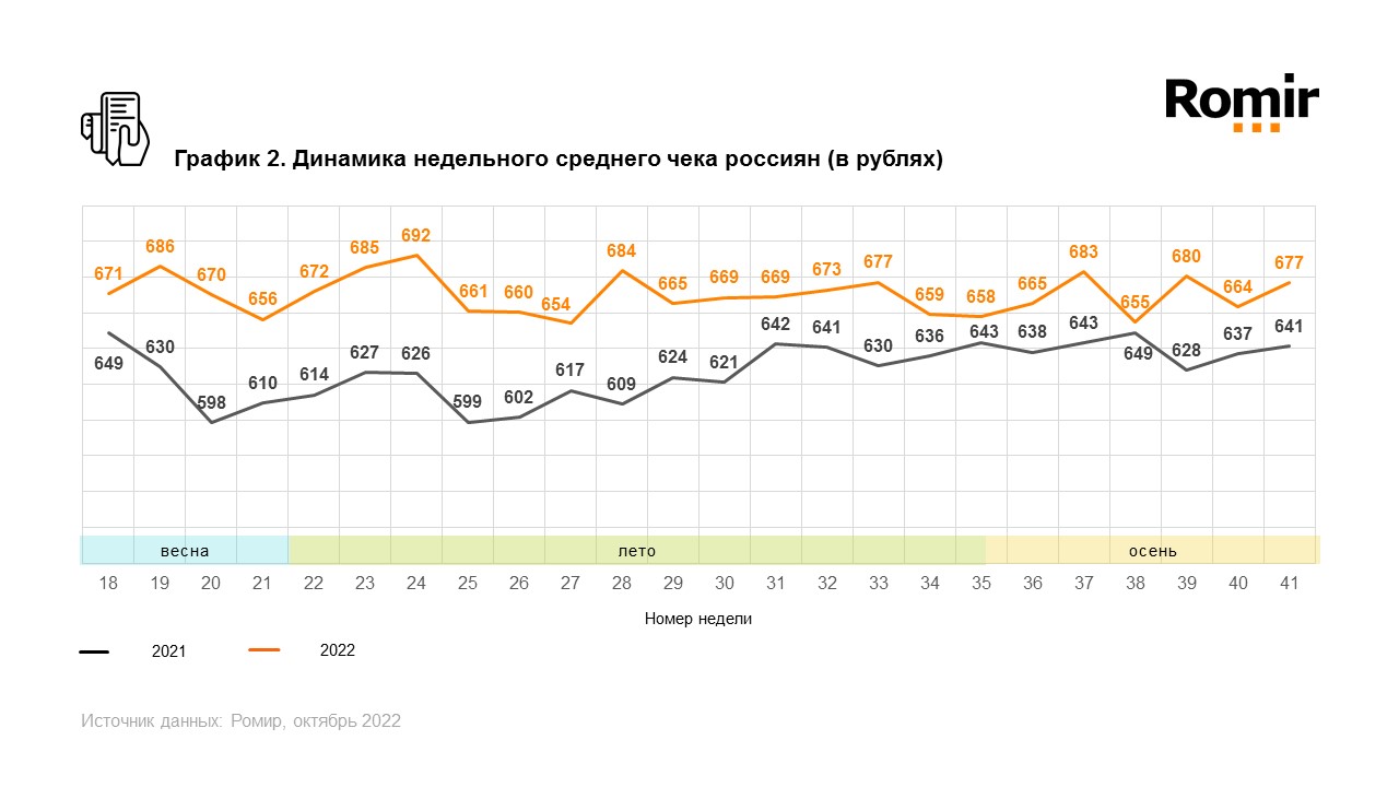 Исследовательский холдинг «Ромир» представил данные по индексу недельных расходов (ИНР) и индексу недельного среднего чека (ИНСЧ).