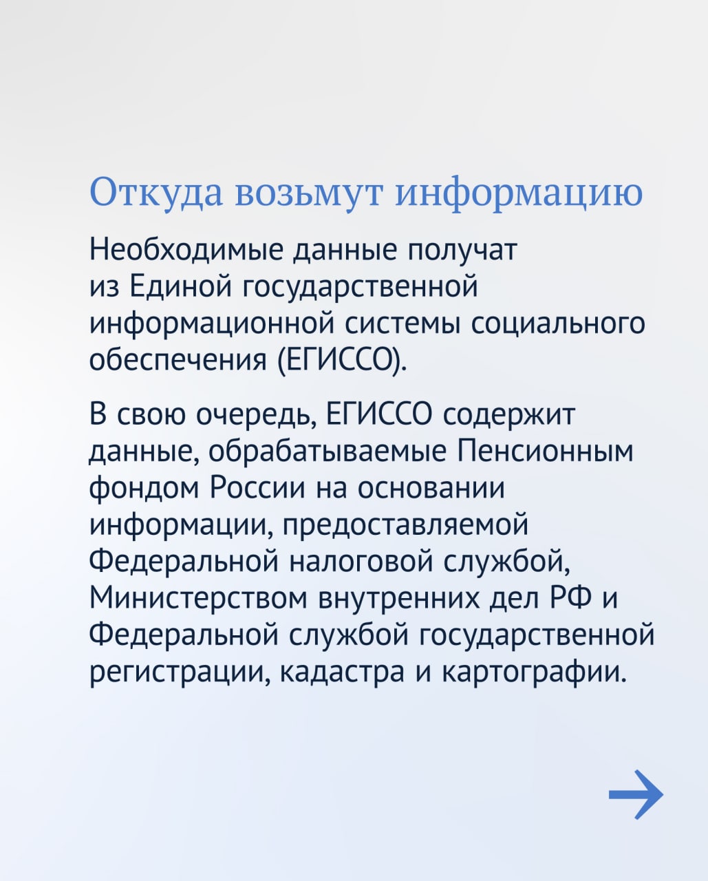Необходимые данные получат из Единой государственной информационной системы социального обеспечения (ЕГИССО).