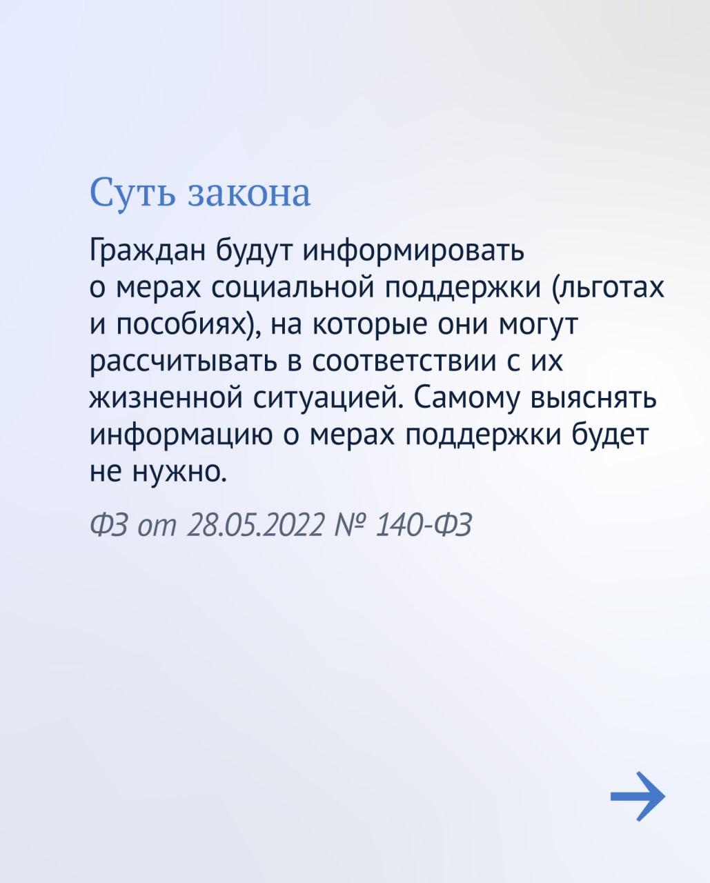 Граждан будут информировать о мерах социальной поддержки (льготах и пособиях), на которые они могут рассчитывать в соответствии с их жизненной ситуацией. Самому выяснять информацию о мерах поддержки будет не нужно.