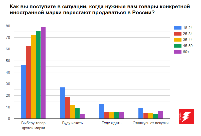 - В случае приостановки продажи определённых иностранных брендов 71 % россиян выберут доступный аналог другой марки.