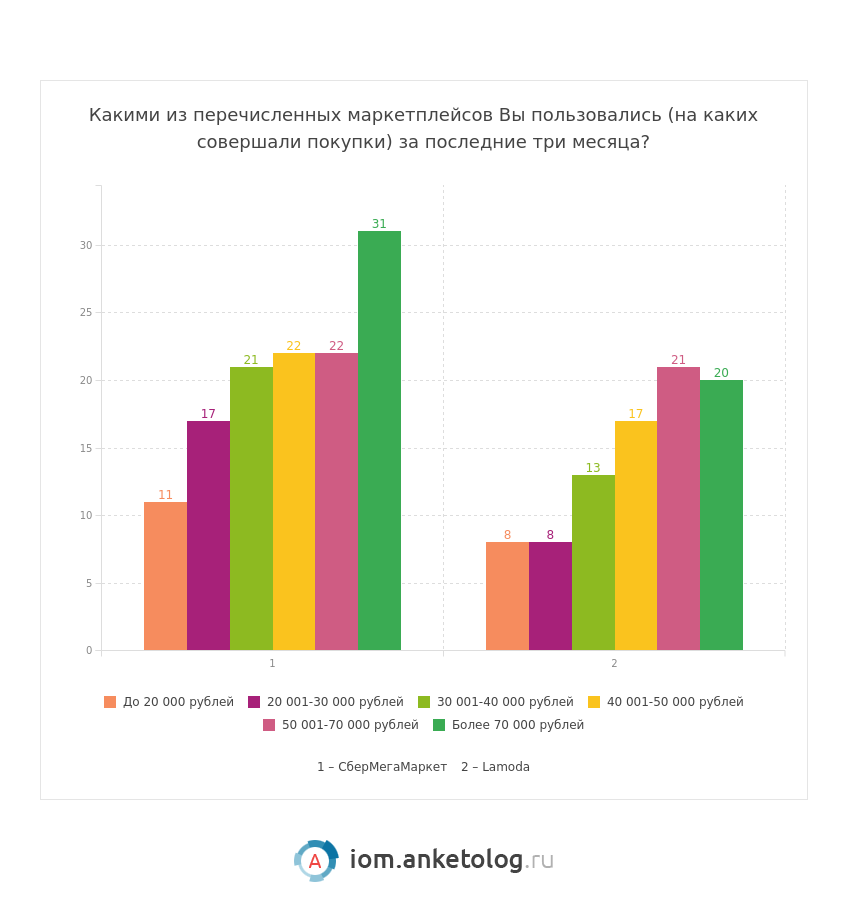 - Люди с более высоким доходом и жители городов-миллионников чаще заказывают товары на Lamoda и в «СберМегаМаркете».