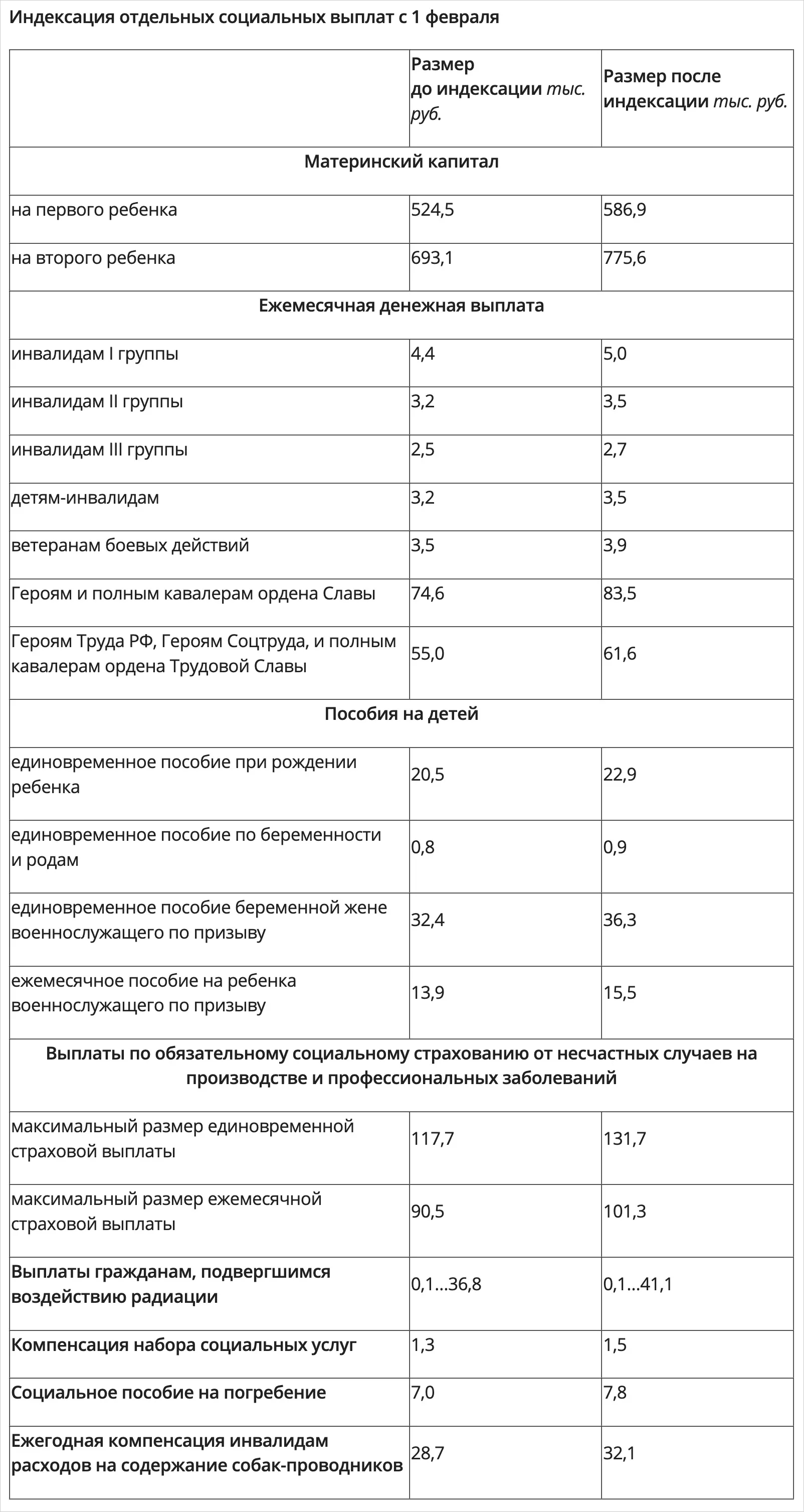 Какие выплаты повысили с 1 февраля на 11,9 %
