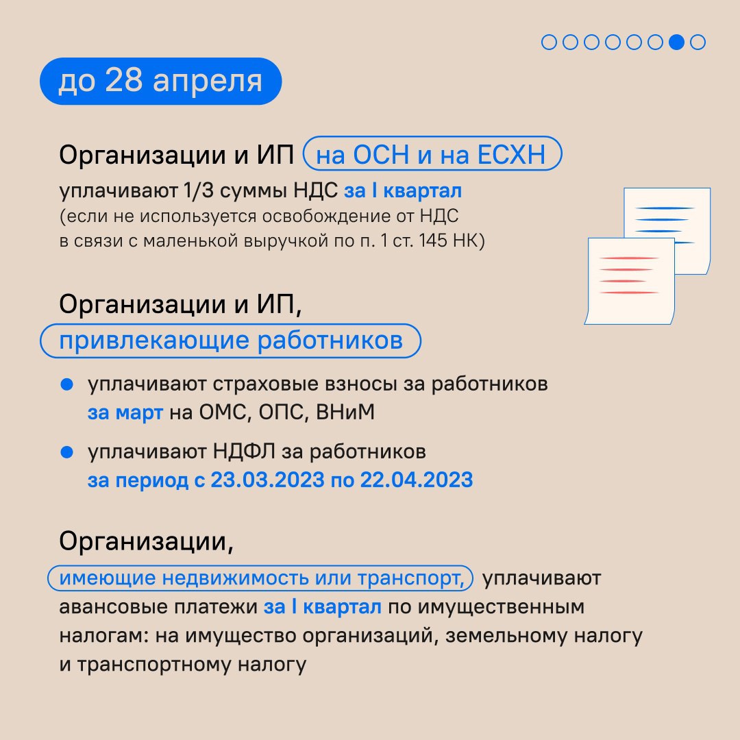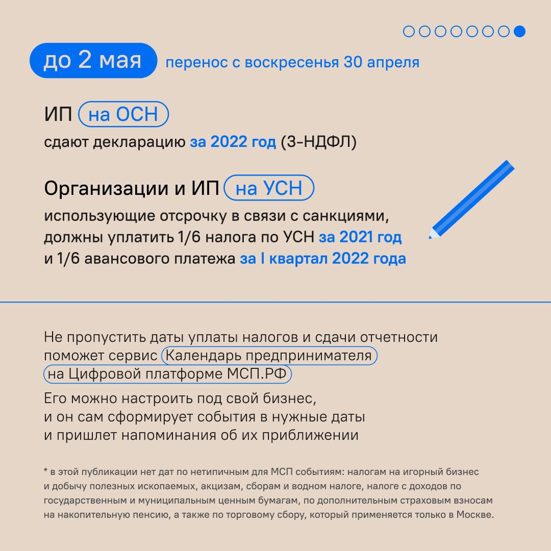 Календарь предпринимателя на апрель