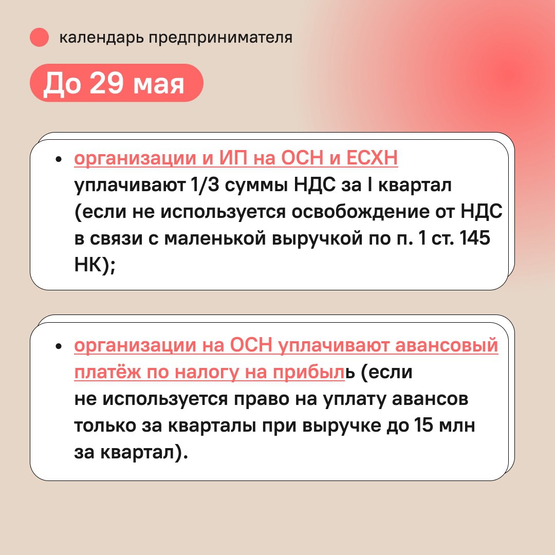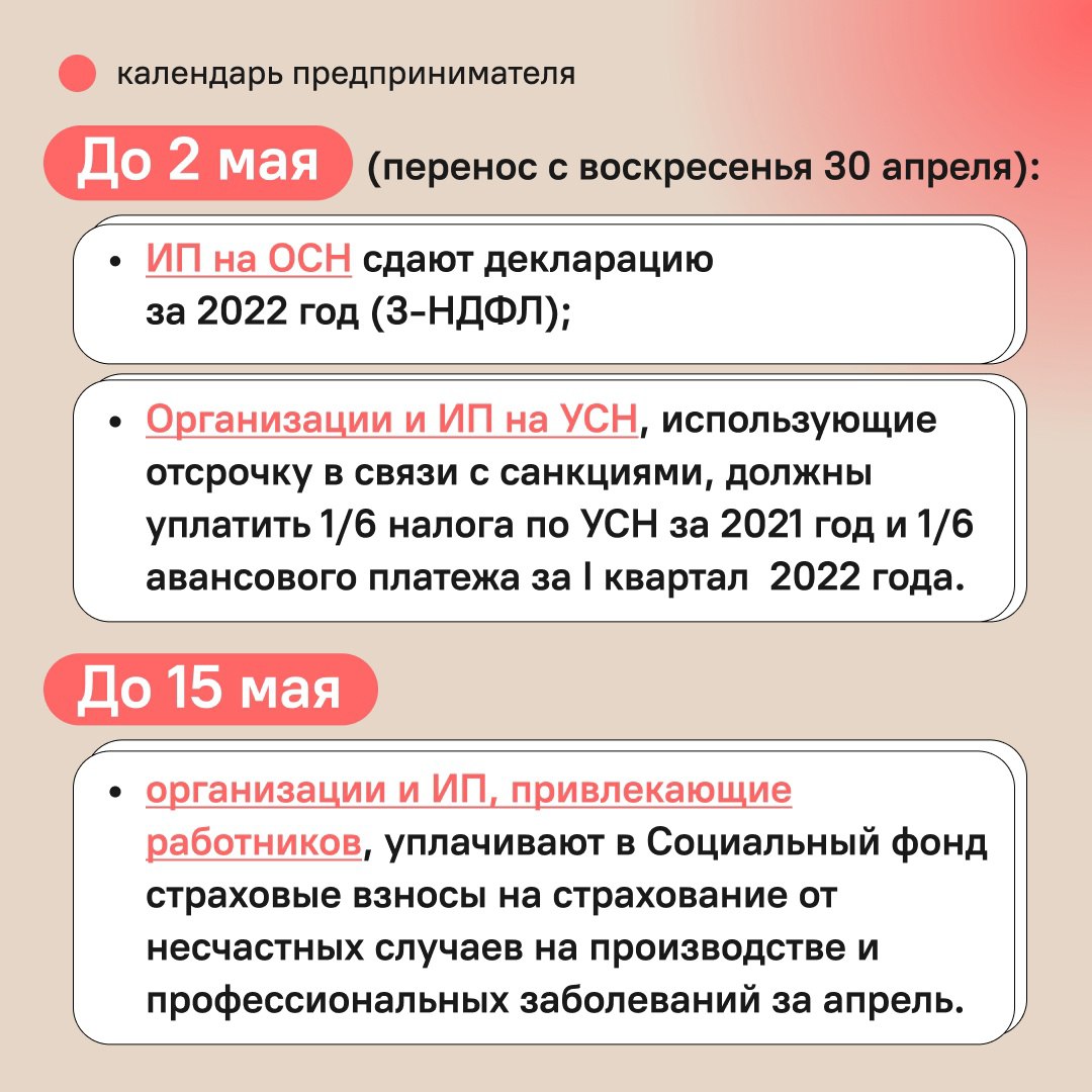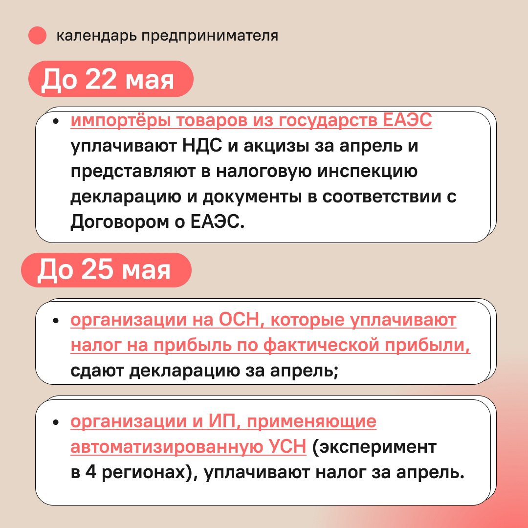Календарь предпринимателя на май