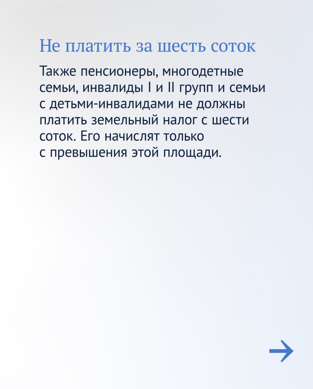 Также пенсионеры, многодетные семьи, инвалиды I и II групп и семьи с детьми-инвалидами не должны платить земельный налог с шести соток. Его начислят только с превышения этой площади.