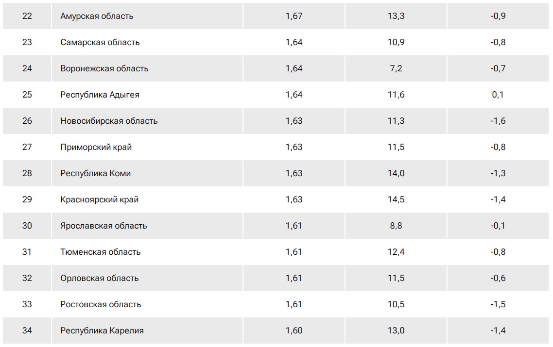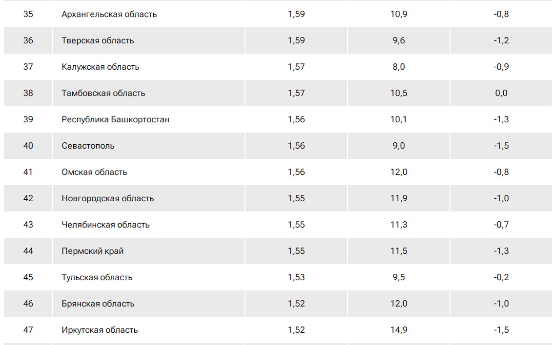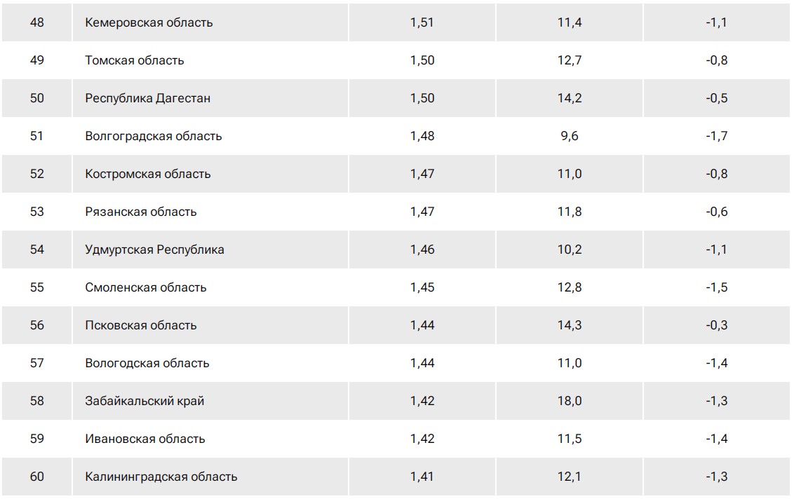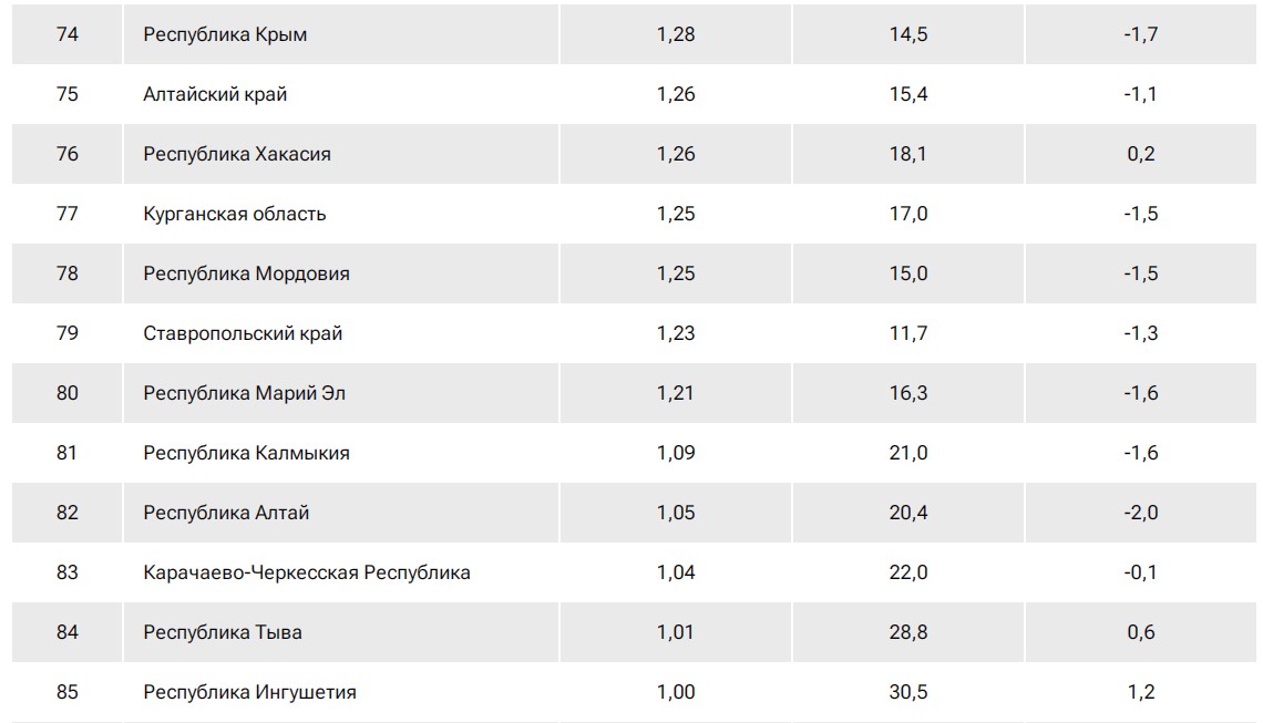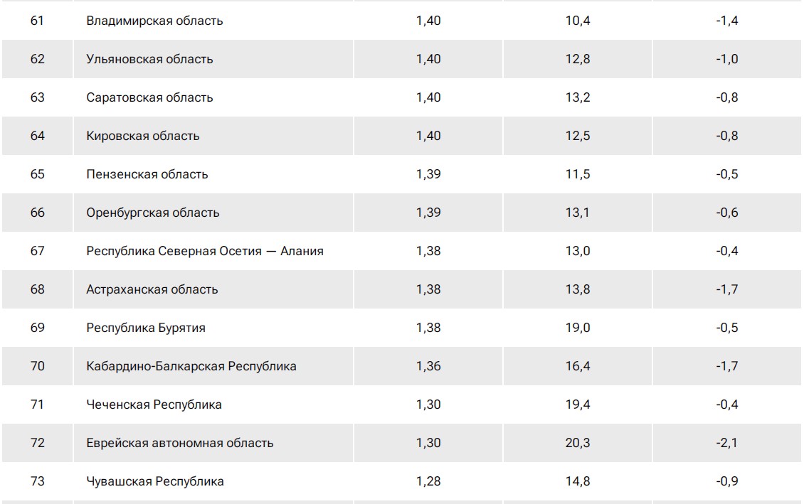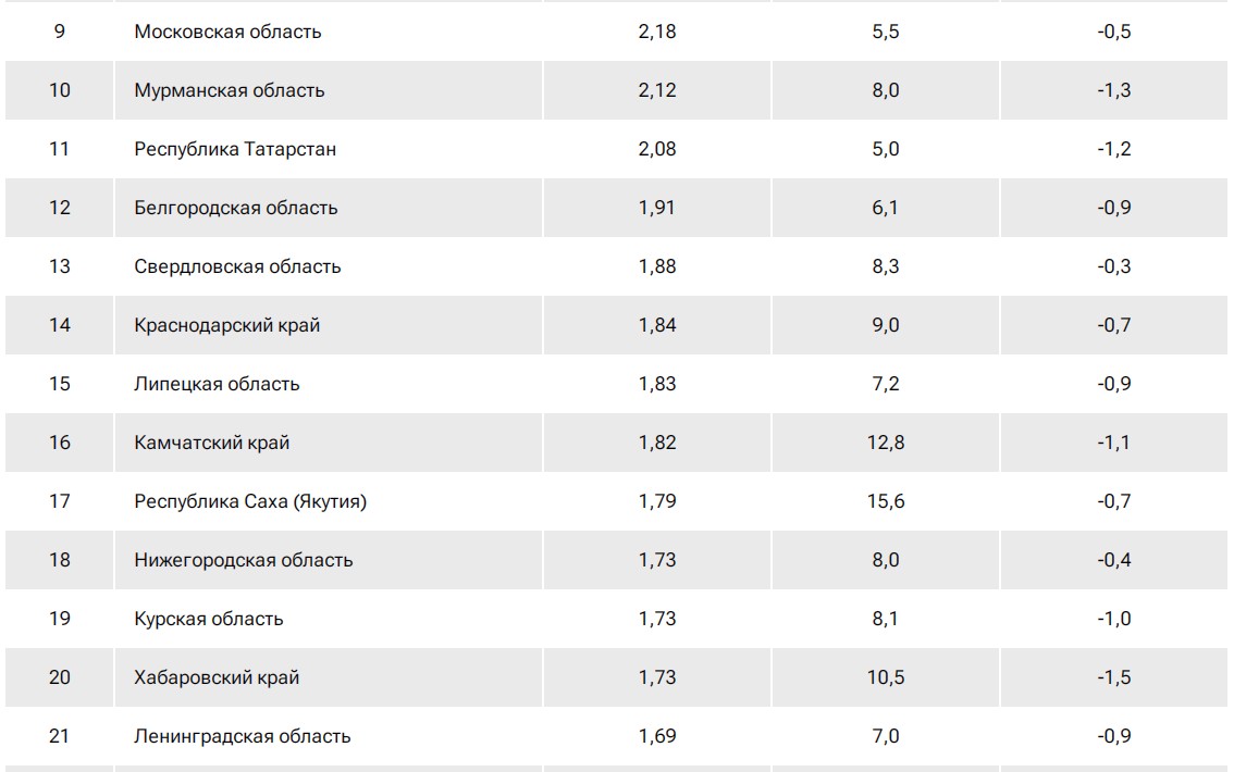 Рейтинг российских регионов по доходам населения.