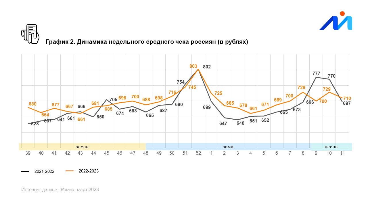 Исследовательский холдинг «Ромир» представляет данные по индексу недельных расходов (ИНР) и индексу недельного среднего чека (ИНСЧ).