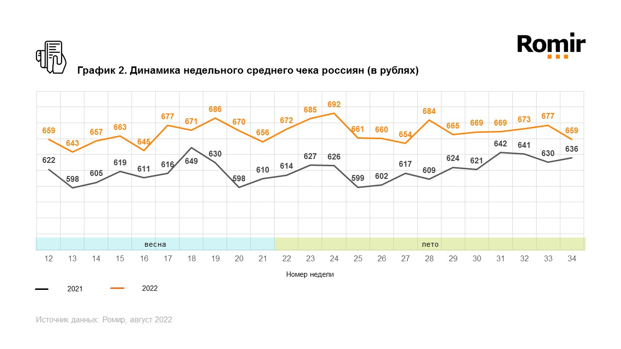 Исследовательский холдинг «Ромир» представил данные по индексу недельных расходов (ИНР) и индексу недельного среднего чека (ИНСЧ).