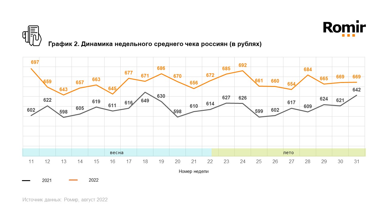 Исследовательский холдинг «Ромир» представил данные по индексу недельных расходов (ИНР) и индексу недельного среднего чека (ИНСЧ).