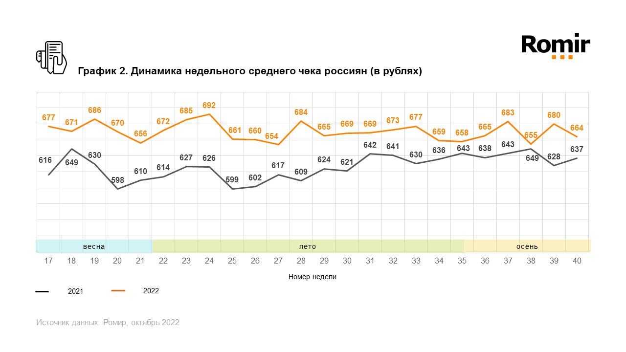 Исследовательский холдинг «Ромир» представил очередные данные по индексу недельных расходов (ИНР) и индексу недельного среднего чека (ИНСЧ).