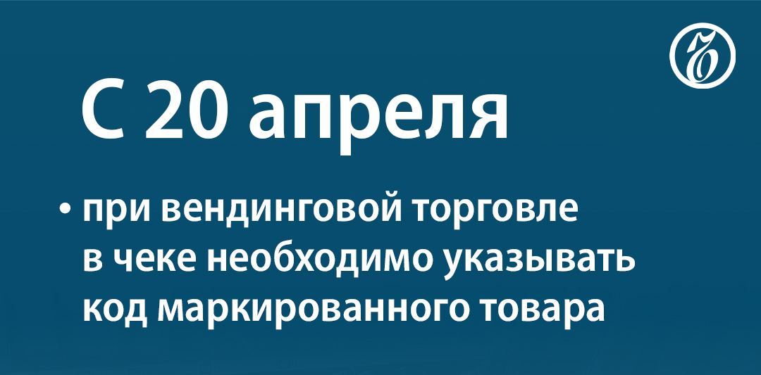 - С 20 апреля при вендинговой торговле в чеке необходимо указывать код маркированного товара.