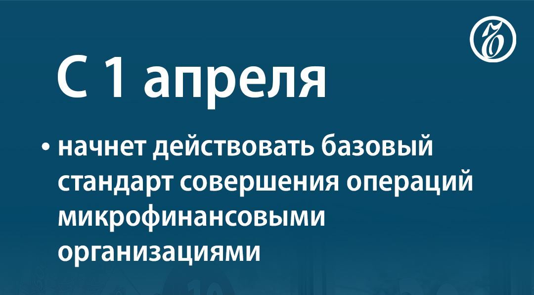 - С 1 апреля начнёт действовать базовый стандарт совершения операций МФО. Так, в документе указаны десять способов проверки клиентов.