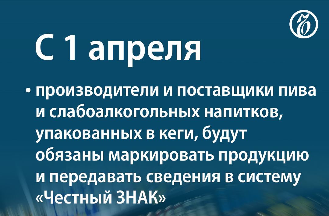 - С 1 апреля производители и поставщики пива и слабоалкогольных напитков в кегах будут обязаны маркировать продукцию и передавать сведения в систему «Честный знак».