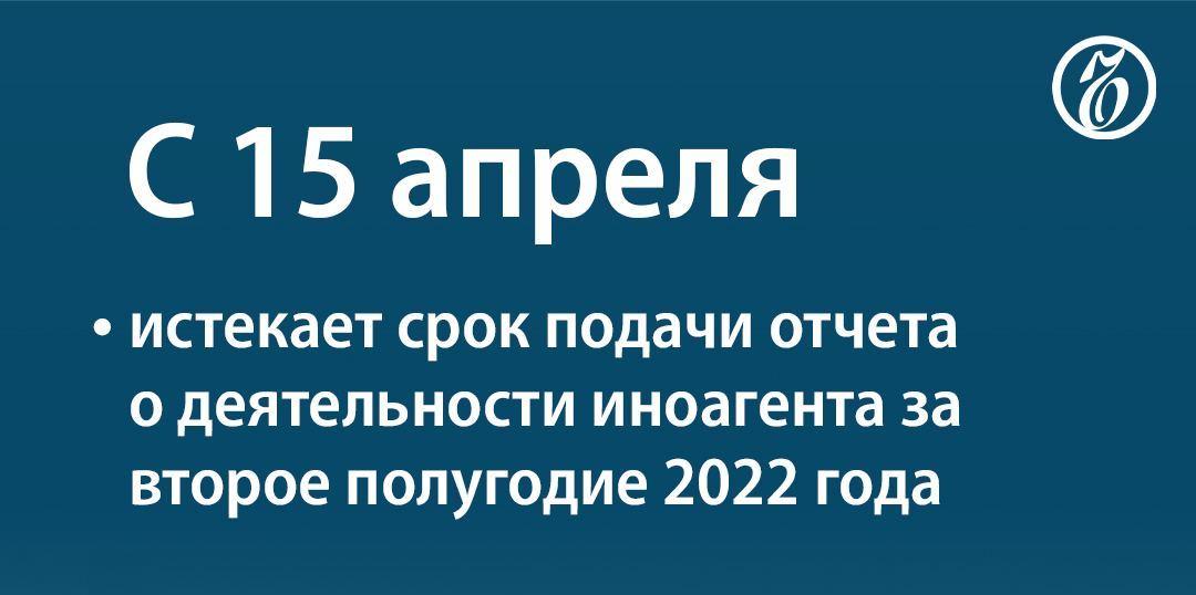 - 15 апреля истекает срок подачи отчёта о деятельности иноагента за второе полугодие 2022 года.