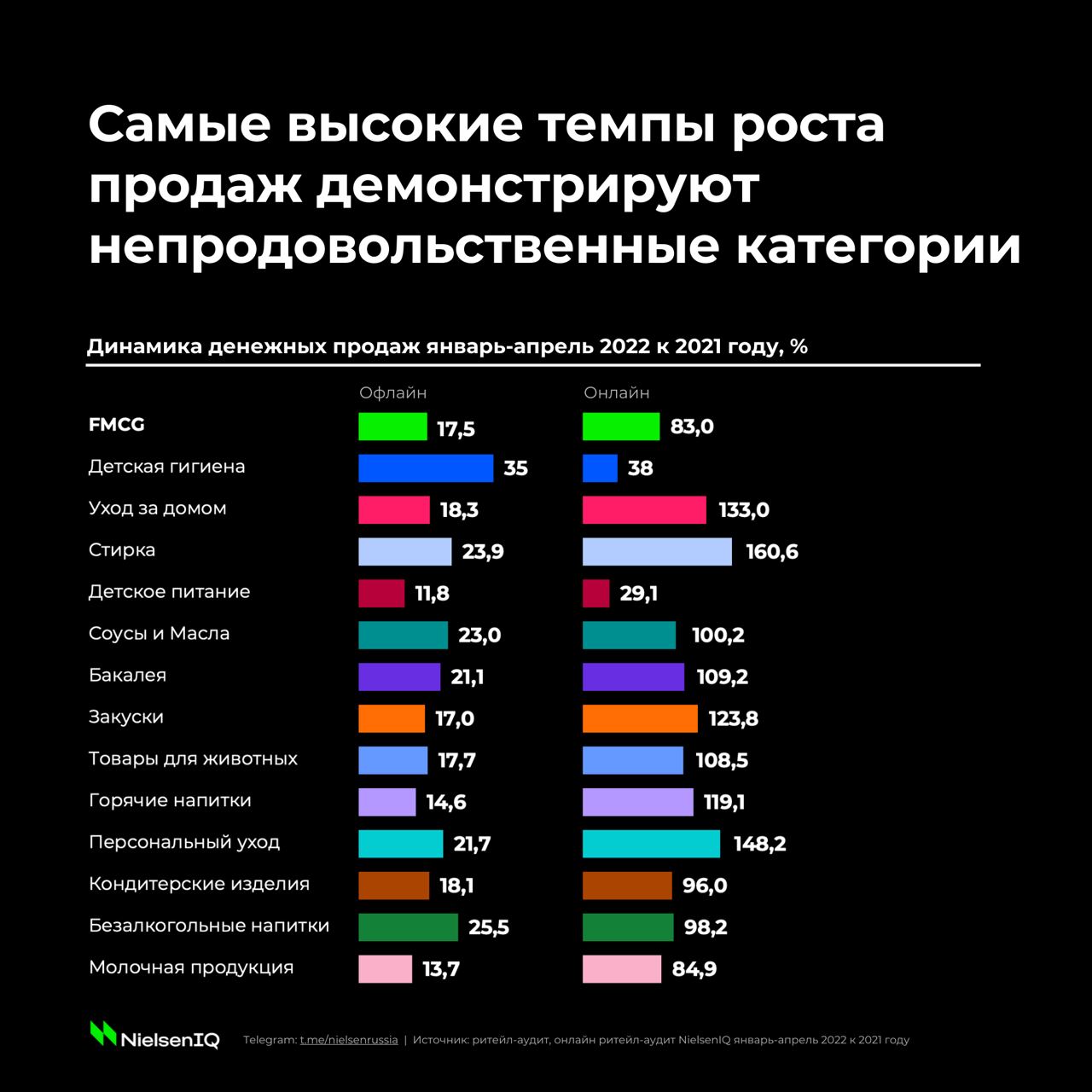 - динамика наиболее крупных категорий по-прежнему в разы выше офлайна;