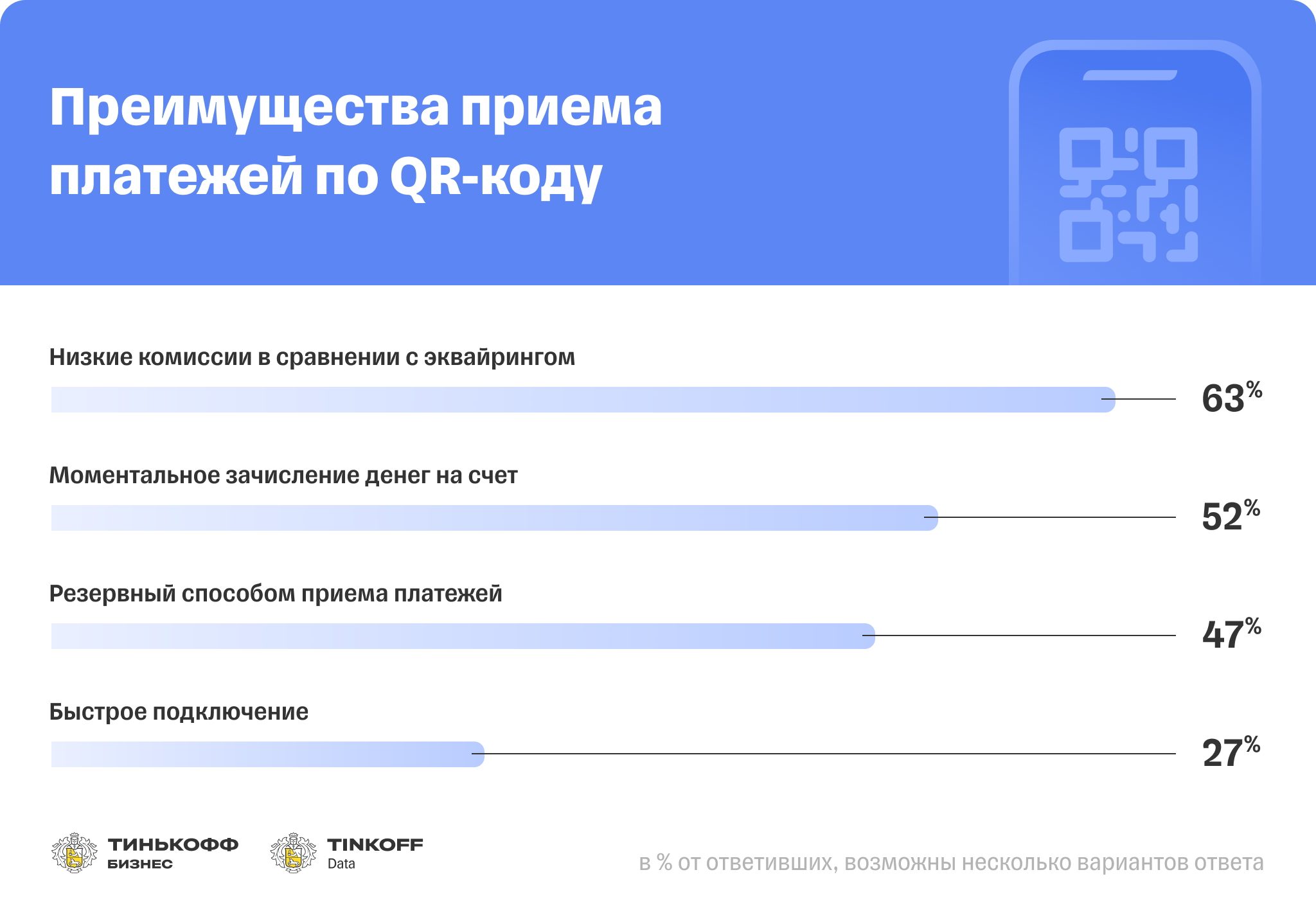 - 55 % компаний в сегменте B2C подключили приём платежей по QR-кодам;