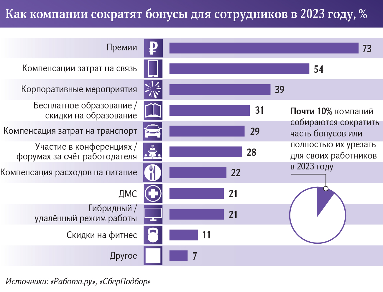 - 7 % работодателей планируют сократить бонусы для своих сотрудников;