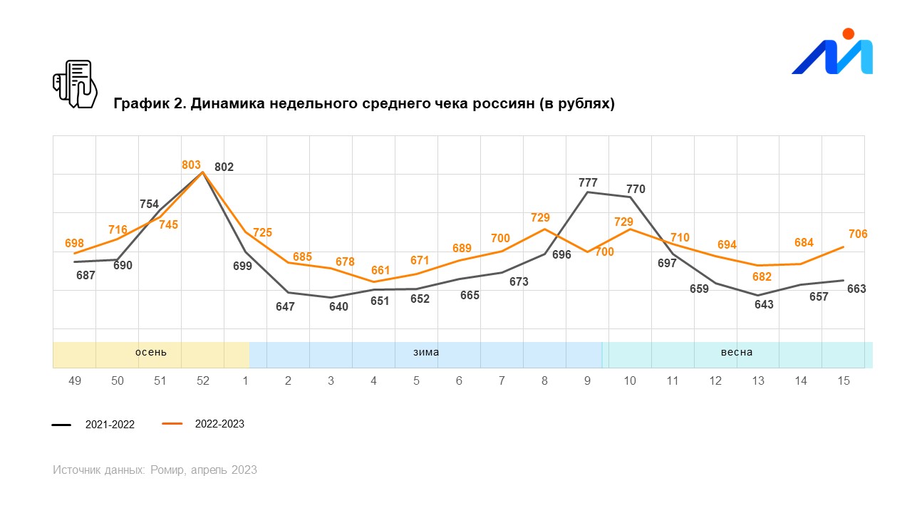 Исследовательская компания «Ромир», которая входит в «М-Холдинг», представила данные по индексу недельных расходов (ИНР) и индексу недельного среднего чека (ИНСЧ).