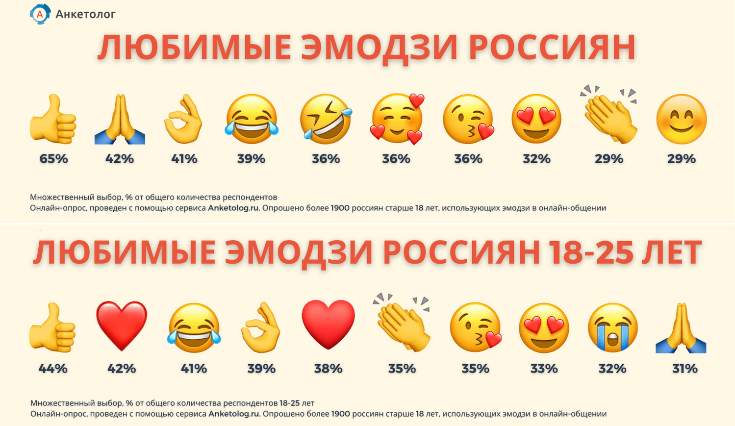 Институт общественного мнения «Анкетолог» посвятил очередное исследование вопросам того, что обычно называют эмодзи. Публикуем результаты опросов с сокращениями.