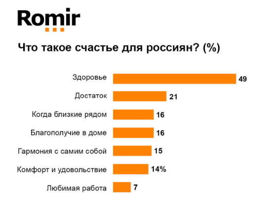 Исследовательский холдинг «Ромир» узнал у россиян, что для них является счастьем в настоящий момент.